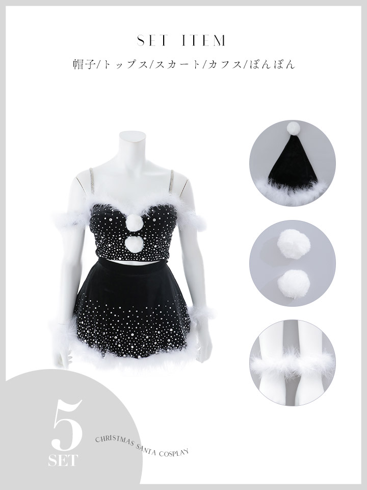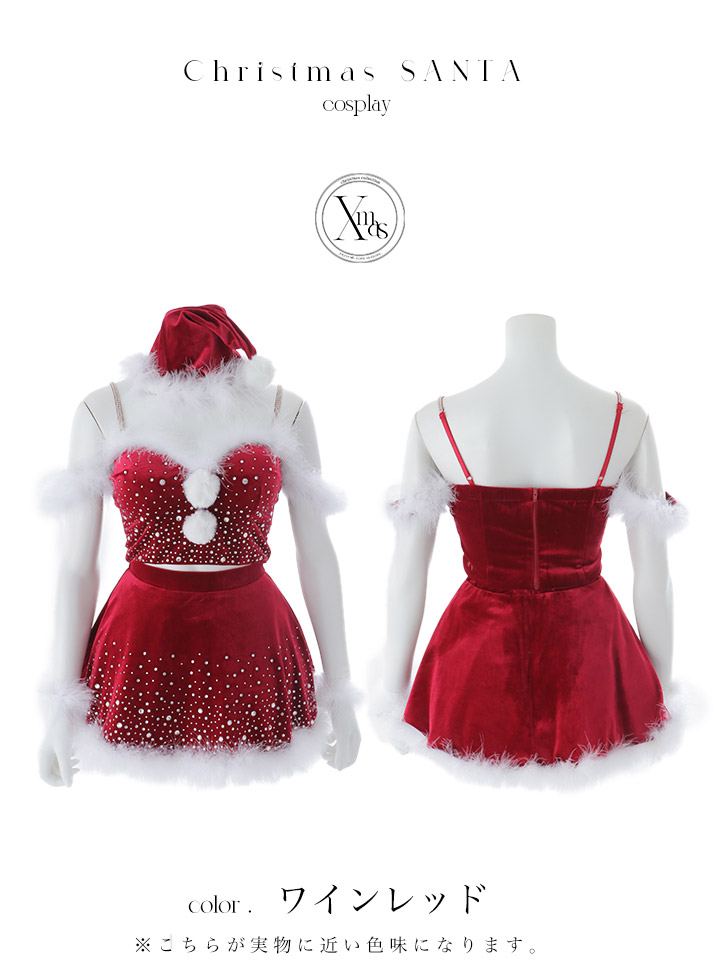 - > 【ノベルティ】【即日発送】【送料無料!】【サンタ】スノービジューセットアップサンタコスプレ【コスプレ5点セット】【XS-Lサイズ/3カラー】[OF03]