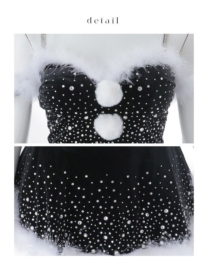 ブラック 黒 スカート ミニスカート フレアスカート 胸盛り 肩出し ファー