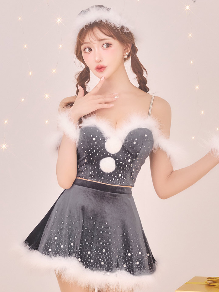 高級感のあるベロア素材のセットアップサンタコスプレ。