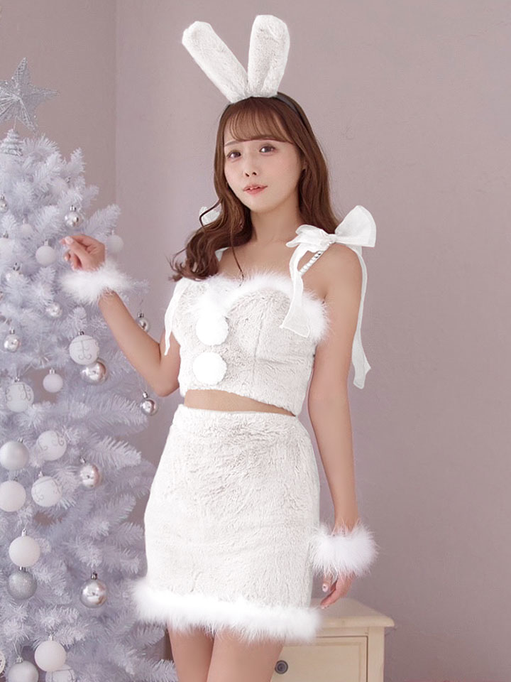 ふわふわのファーをあしらった大人可愛いサンタセットアップ。