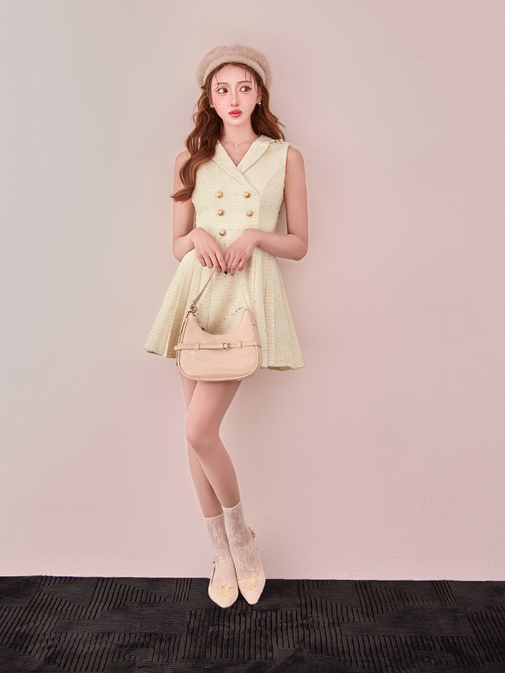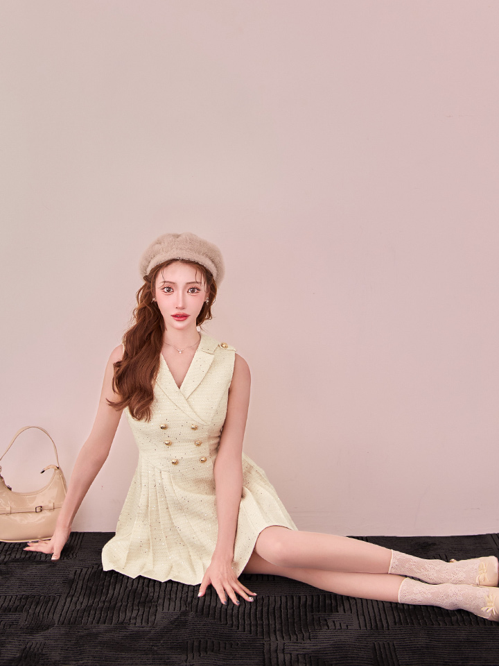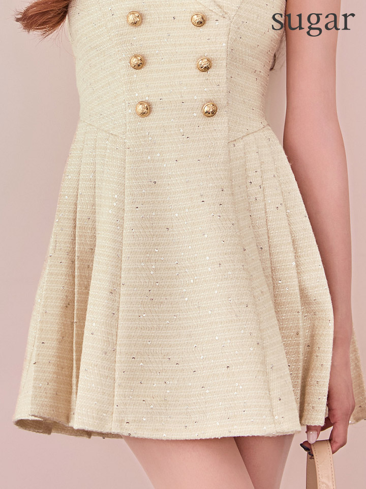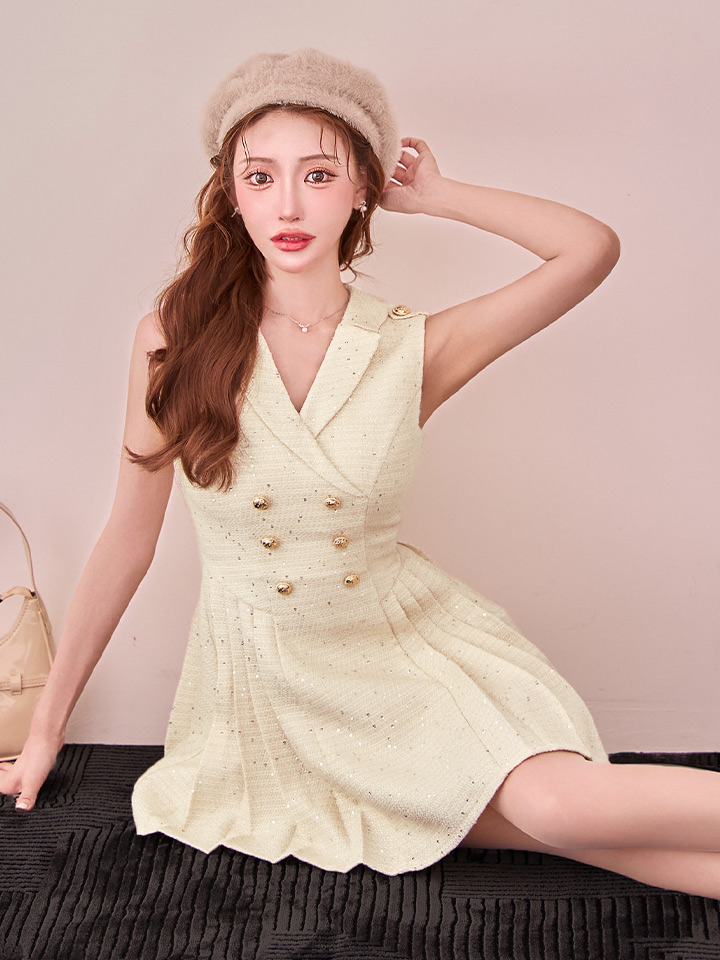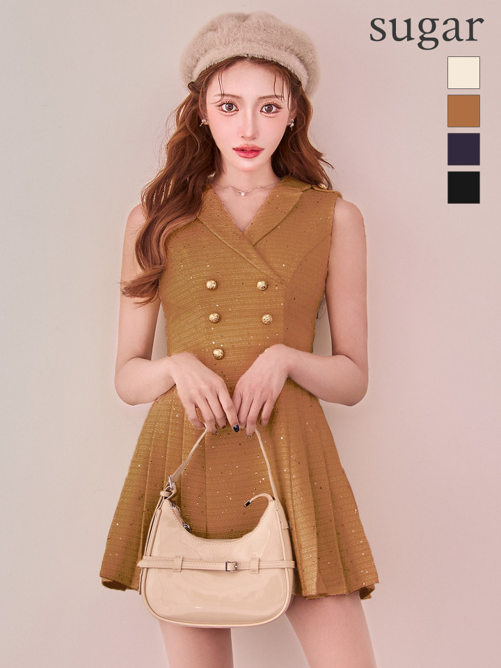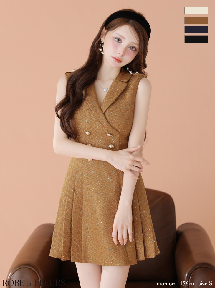 - > 【予約商品/10月下旬発送予定】XS-Lサイズあり【ROBE de FLEURS/ローブドフルール】ダブルボタン/ 襟付き/ ノースリーブ/ フレア/ ミニドレス/ キャバドレス[OF08]