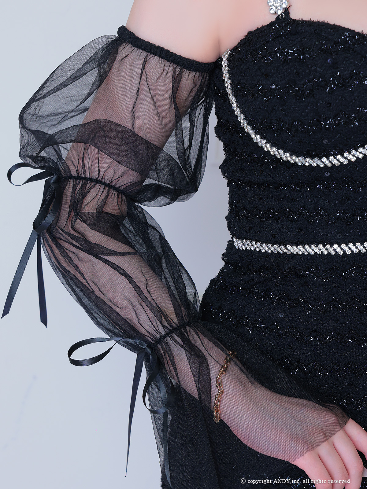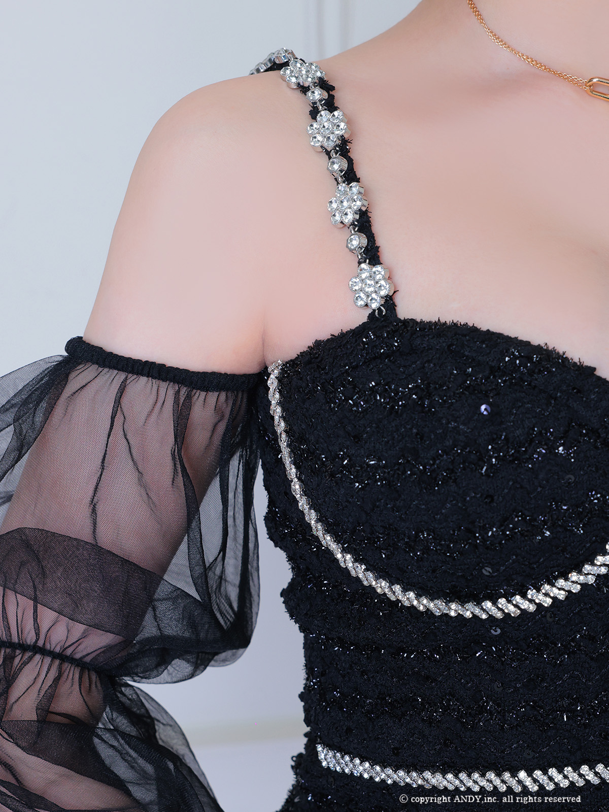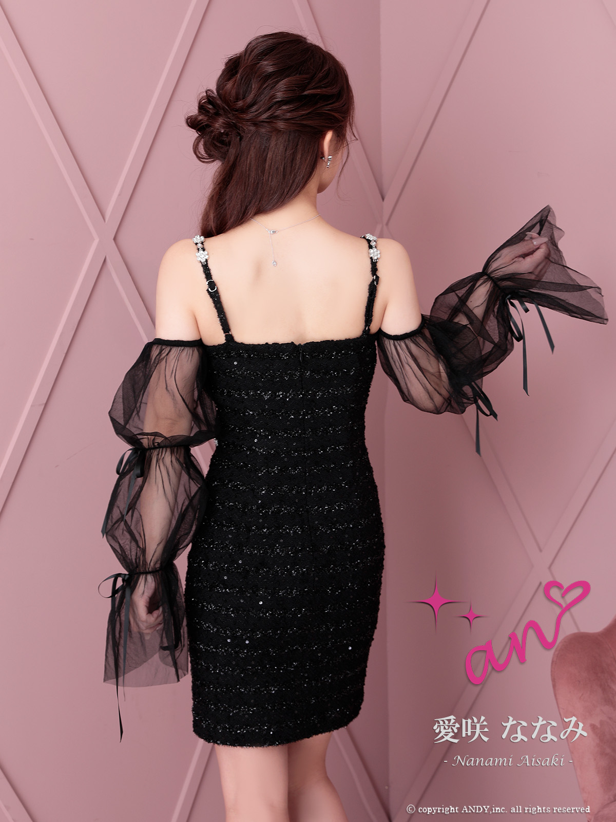 - > XSサイズあり【an /アン】2way/ チュールスリーブ付き/ フラワービジュー/ キャミ/ バストジップ/ スパンコール混ツイード/ タイト/ ミニドレス/ キャバドレス[OF05]
