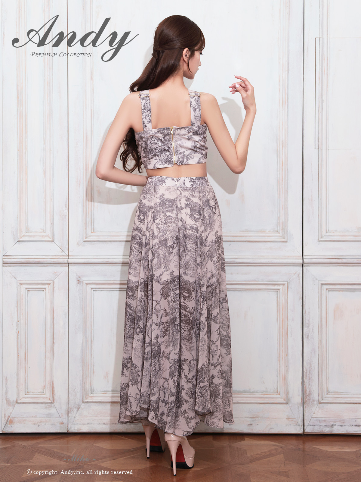 XSサイズあり【ANDY/アンディ】ホルターネック/ クラシカルプリント/ ウエストカット/ シフォン/ フレア/ マキシ丈/ ワンピース/ ロングドレス/ キャバドレスlong[OF05] [ON3015-BR-2510]