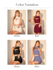 ショート丈のトップスから見えるウエストとバスト部分の肌見せがセクシー。