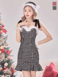 - > 【サンタコス 5点セット】ギンガムチェック タイトワンピースサンタコスプレ【XS-XLサイズ/2カラー】[YMT]