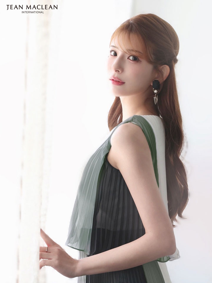 繊細なシフォンプリーツが動く度に揺れて優雅な雰囲気を纏います。