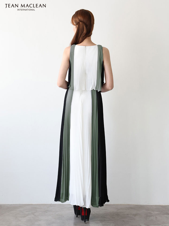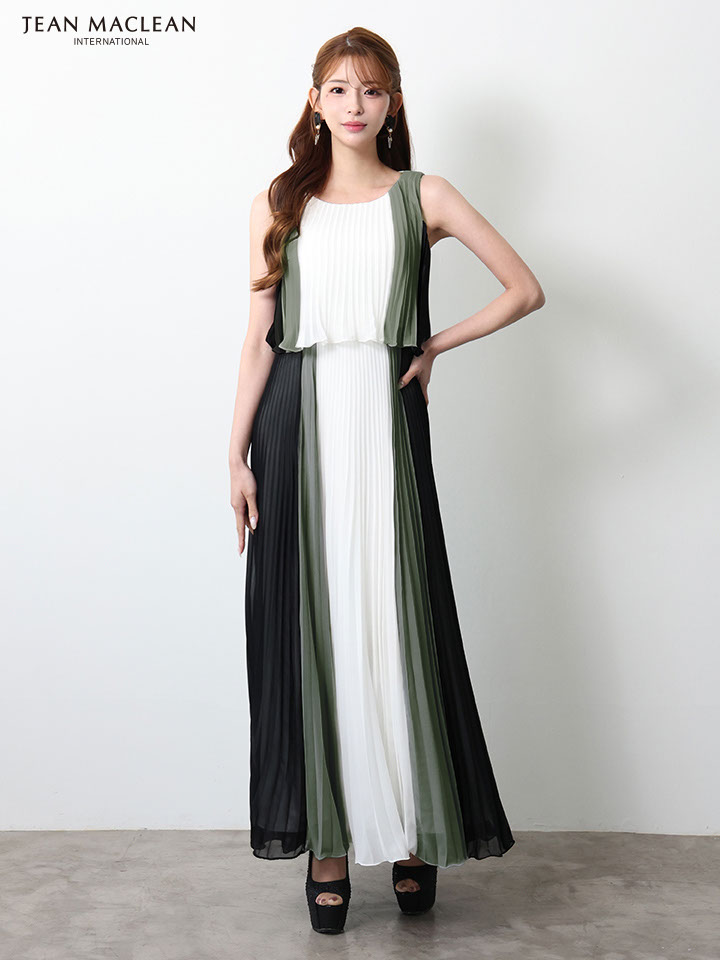 【JEAN MACLEAN/ジャンマクレーン】シフォン/ メロウ/ プリーツ/ マルチカラー/ ノースリーブ/ フレア/ ワンピース/ ロングドレス/ キャバドレスlong[OF2A]【一部予約商品/2月下旬発送予定】 [51950-JM-BExMOC-2510]