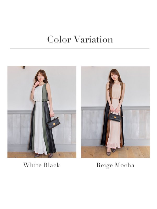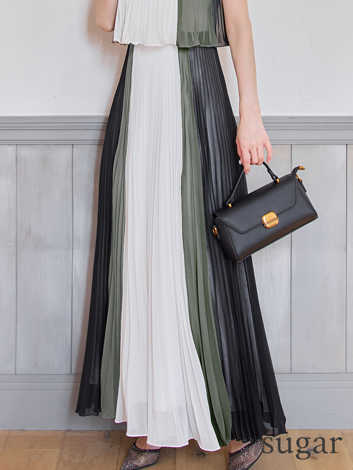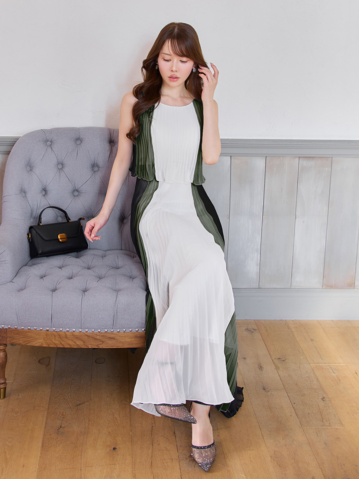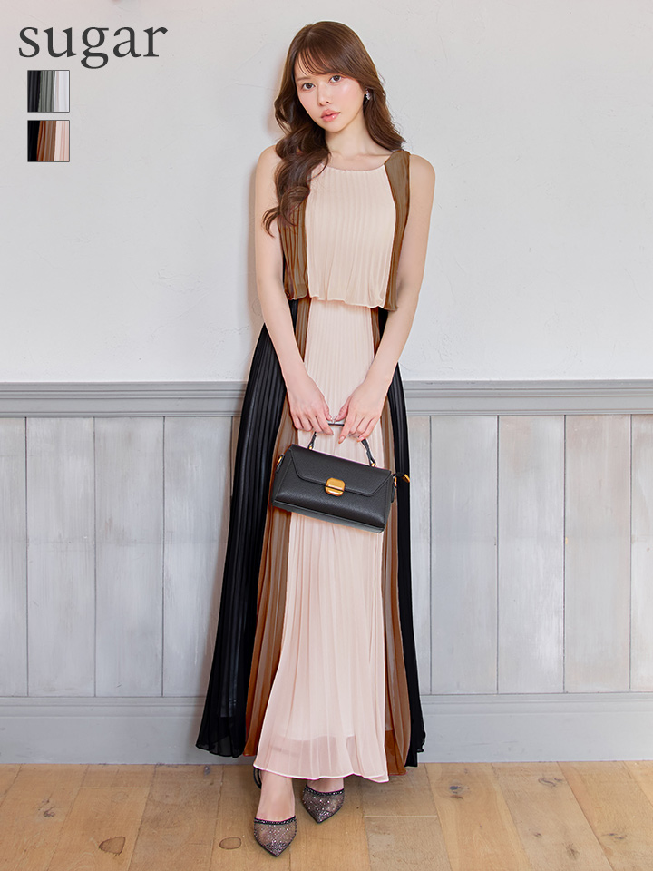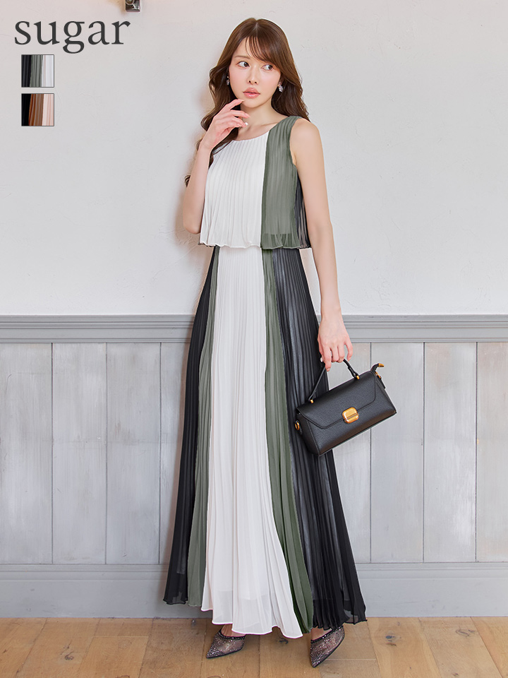 【JEAN MACLEAN/ジャンマクレーン】シフォン/ メロウ/ プリーツ/ マルチカラー/ ノースリーブ/ フレア/ ワンピース/ ロングドレス/ キャバドレスlong[OF2A] [51950-JM-BExMOC-S251029]