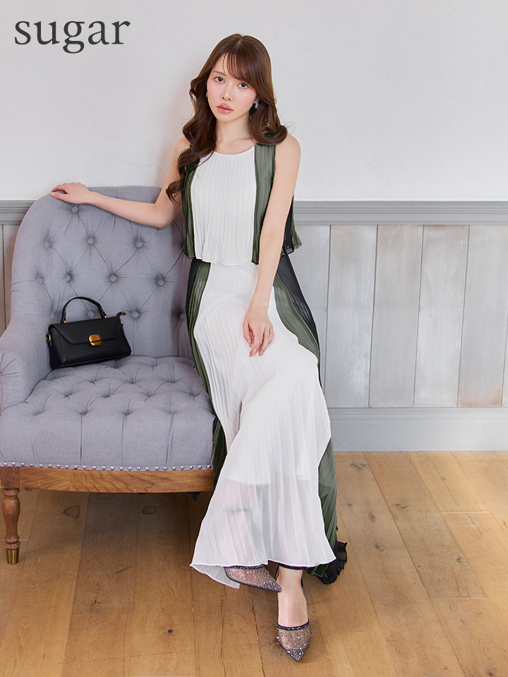 繊細なシフォンプリーツが動く度に揺れて優雅な雰囲気を纏います。