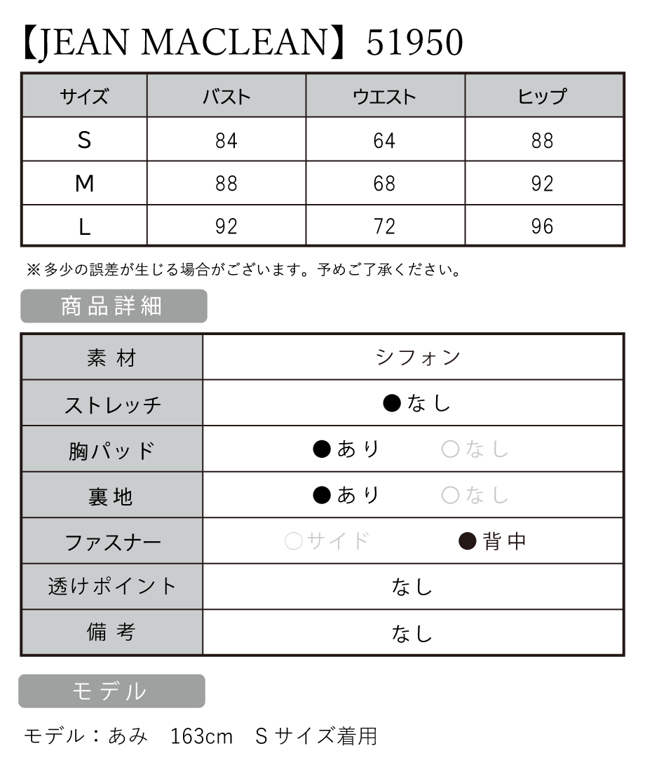 ※商品によって、ホック部分が金具に引っかけるタイプとドレス本体に引っかけるタイプがございます。【JEAN MACLEAN/ジャンマクレーン】