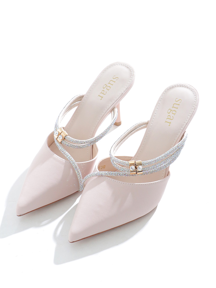 ラインビジューが煌めく洗練された印象のパンプス。