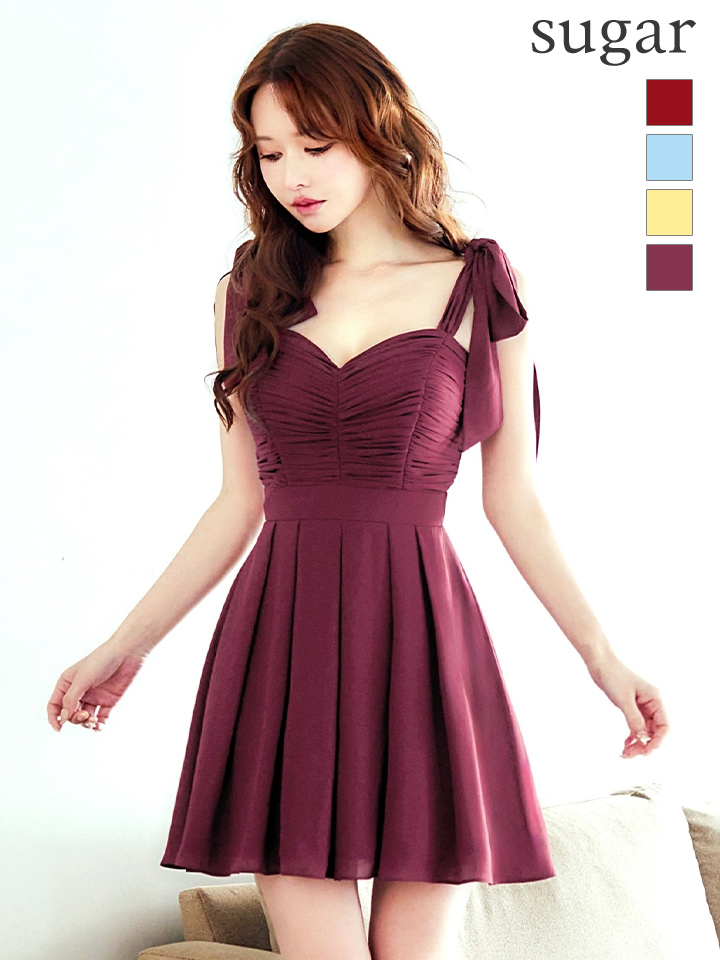 - > XS-Lサイズあり【Donia Quinn / ドニアクイーン】 ギャザートップス/ ショルダーリボン/ ノースリーブ/ ハイウエスト切替/ ワンカラー/ フレア/ ワンピース/ ミニドレス/ キャバドレス[OF05]
