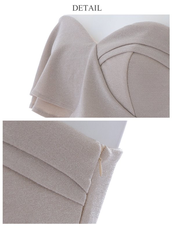 フリルベアデザインでバストを強調しつつ、デコルテ周りをすっきりと魅せ、アクセ映えも◎