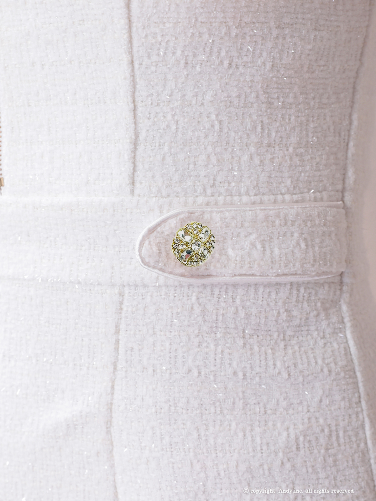 煌めくビジューボタンが高級感をプラスし、ハイウエストxタイトスカートでスタイルUP効果♡