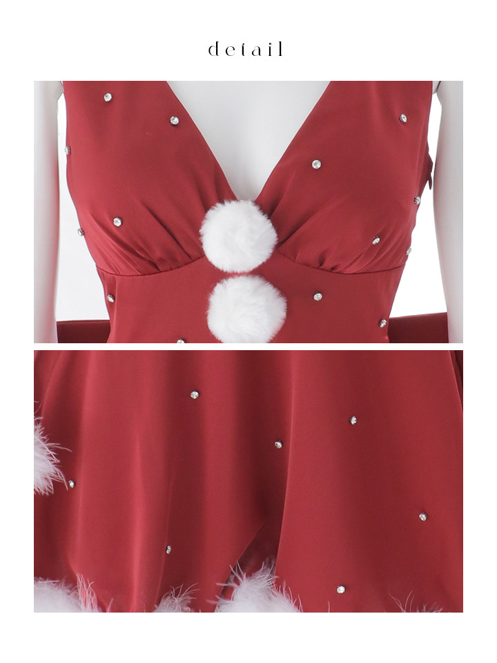 【即日発送】【サンタ】バックビッグリボンビジューワンピサンタコスプレ【コスプレ5点セット】【S-Lサイズ/1カラー】[OF04] [SS-171-YN-dzw-R-25RP]