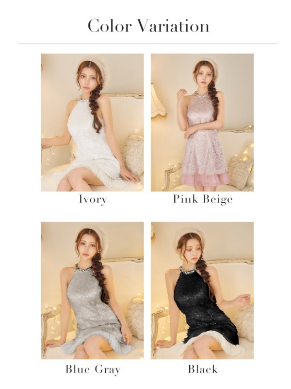 - > 【予約商品/11月上旬発送予定】XSサイズあり【DEA./ディア】スパンコール/ フリンジ/ ハイネック/ フレア/ ミニドレス/ キャバドレス[OF08]