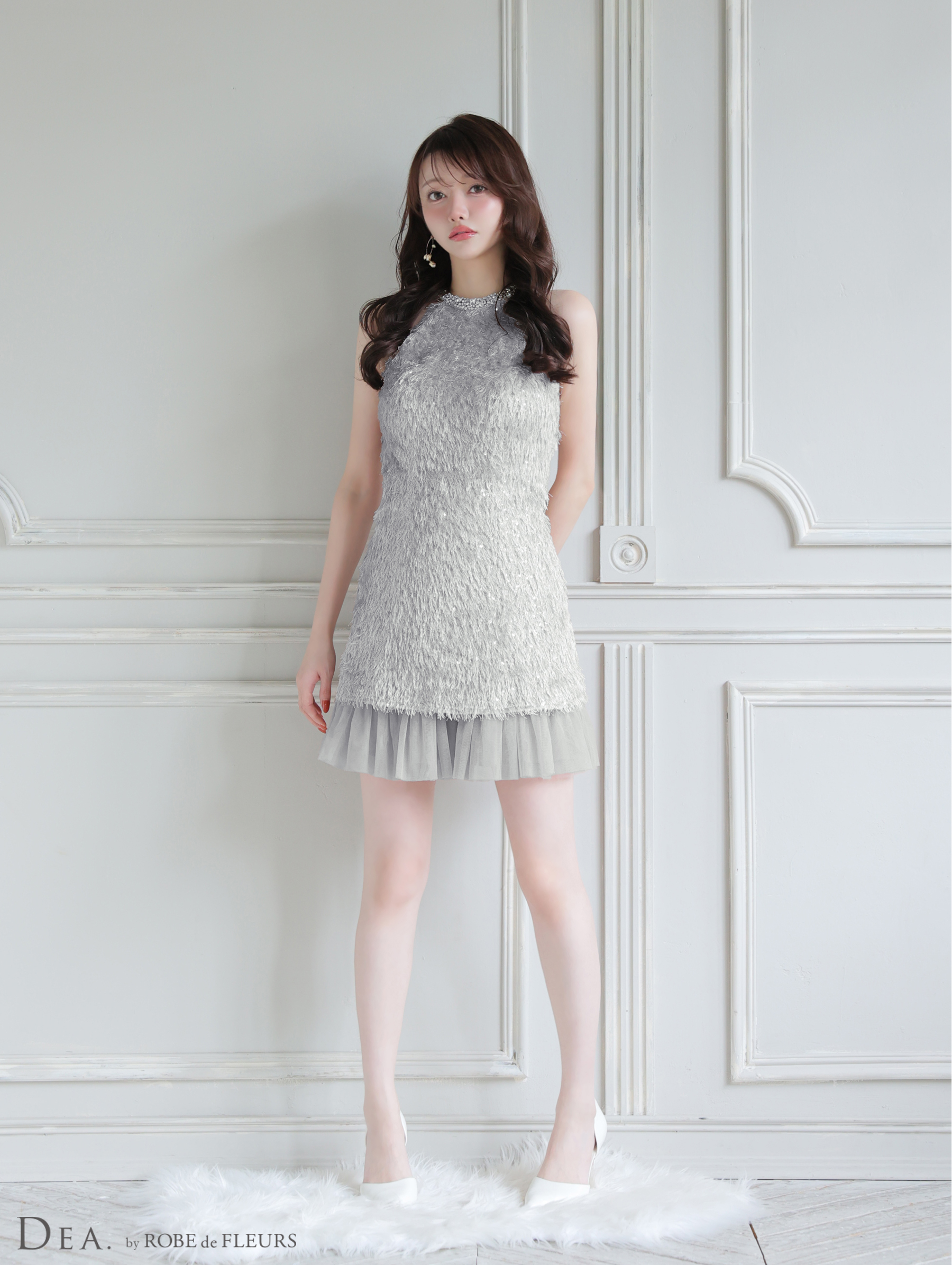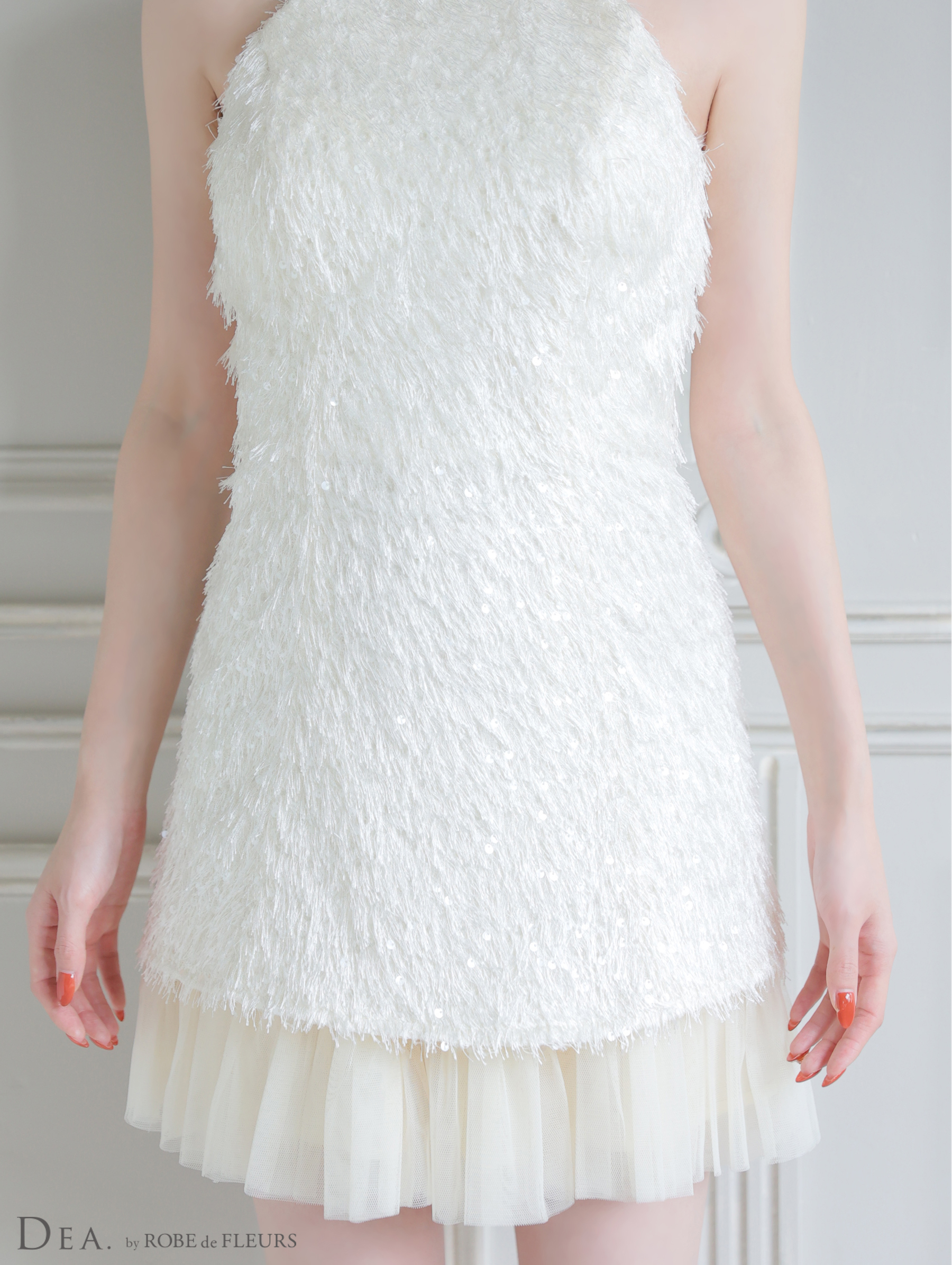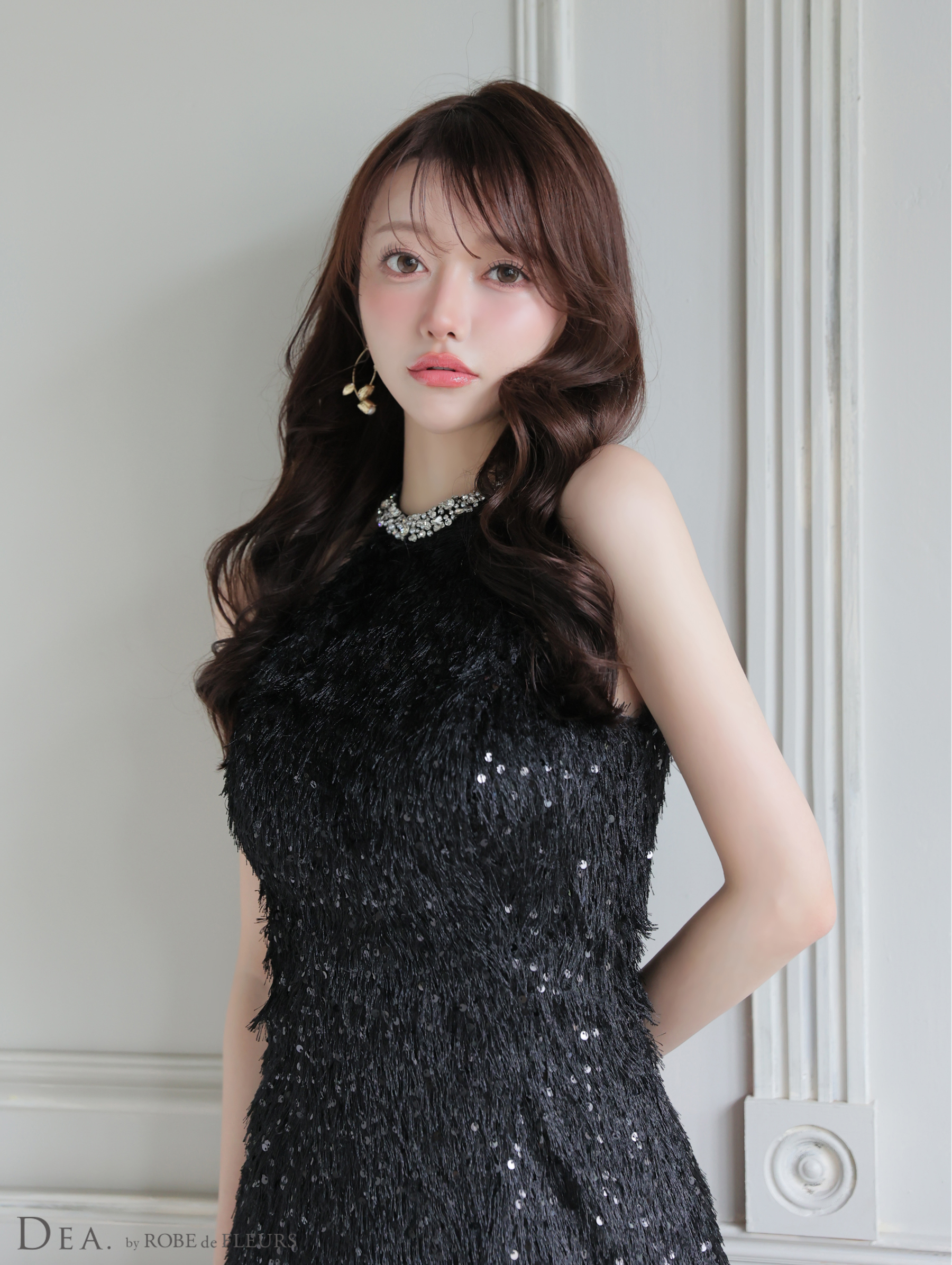 【予約商品/11月上旬発送予定】XSサイズあり【DEA./ディア】スパンコール/ フリンジ/ ハイネック/ フレア/ ミニドレス/ キャバドレス[OF08] [DE4135-IV-S251101]