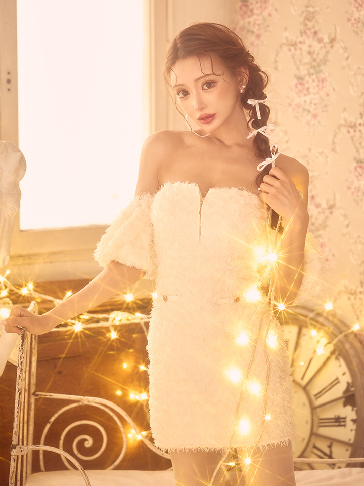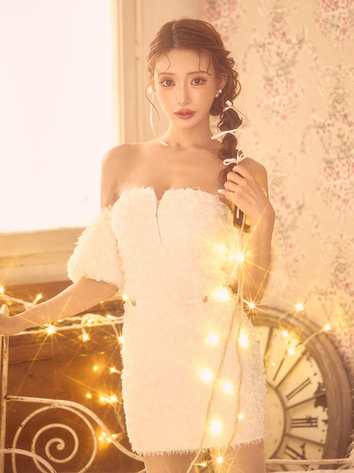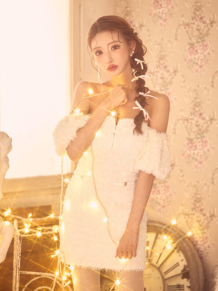 - > 【予約商品/11月上旬発送予定】XSサイズあり【ROBE de FLEURS/ローブドフルール】立体フリンジレース/ パフスリーブ/ オフショル/ タイト/ ミニドレス/ キャバドレス[OF08]