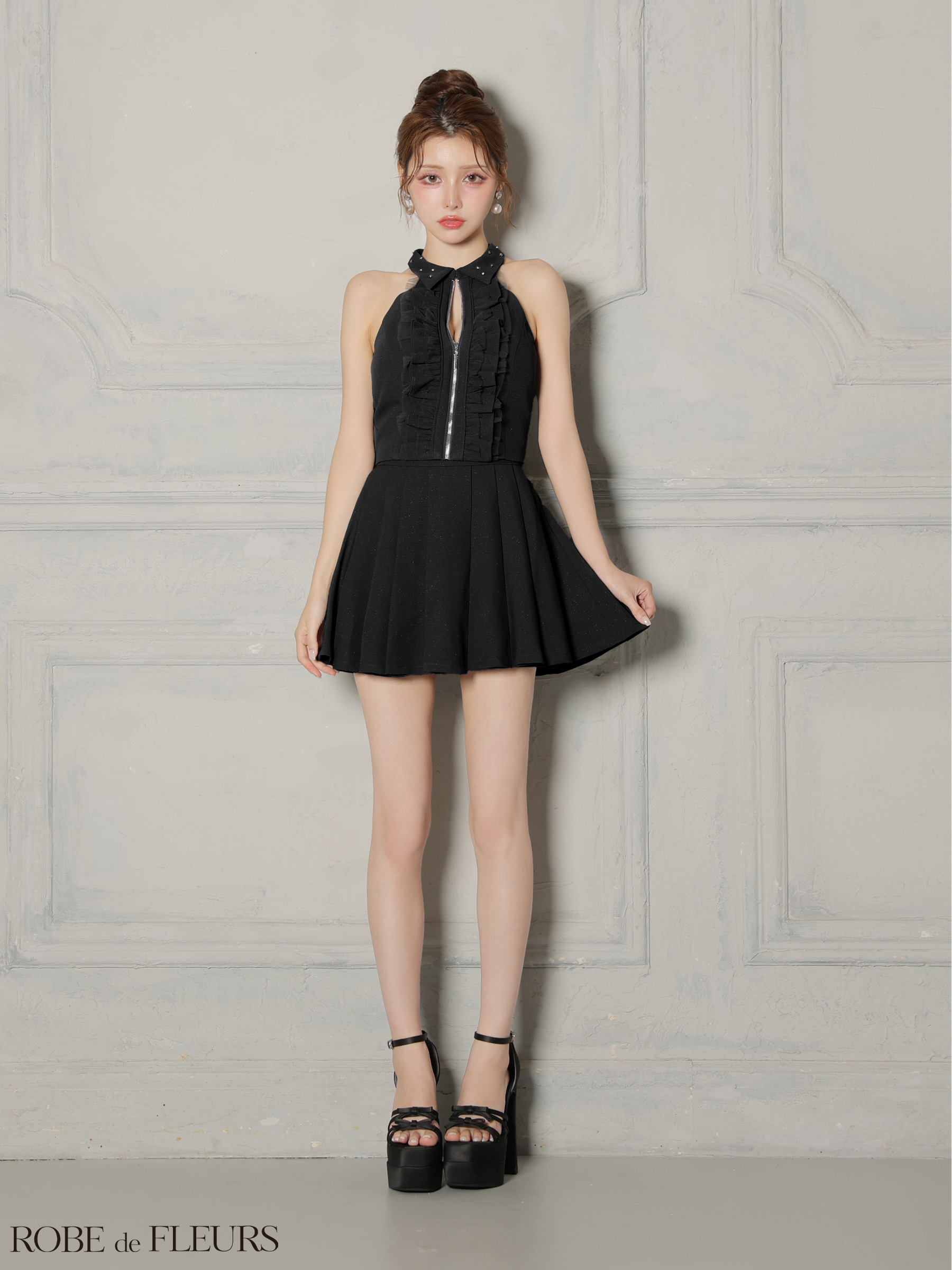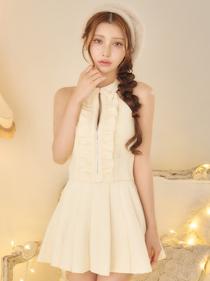 - > 【予約商品/11月下旬発送予定】XSサイズあり【ROBE de FLEURS/ローブドフルール】レース/ ハイネック/ セットアップ/ フレア/ ミニドレス/ キャバドレス[OF08]