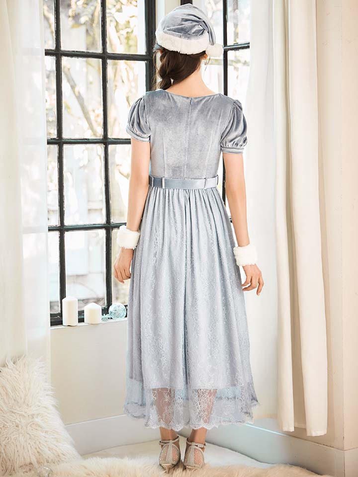 #フレア #ワンピース #Aライン #袖あり #半袖 #レース #ベロア #大人 #クリスマス #パーティ # サンタコス #サンタさん
