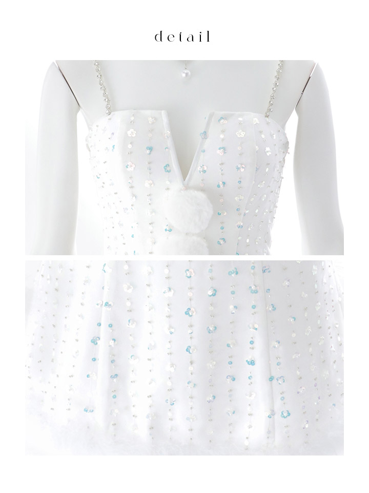 フレアスカート 白 ホワイト ミニ ノースリーブ ファー