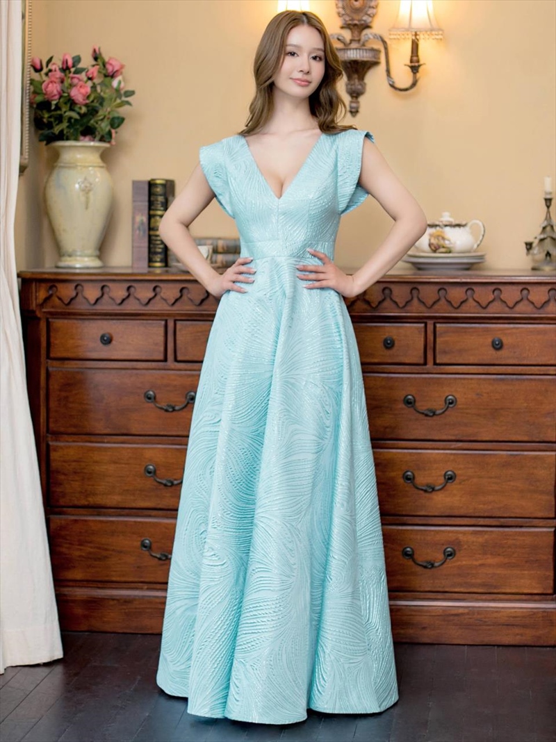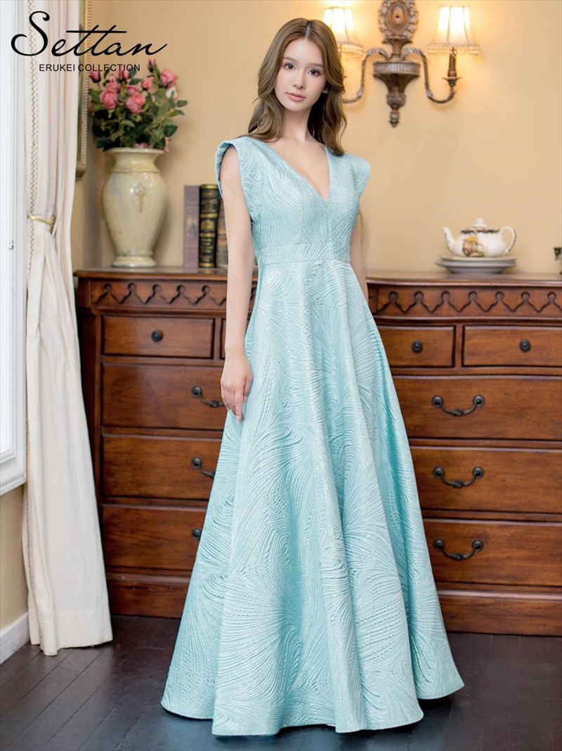 XS-Lサイズあり【SETTAN/セッタン】ワンカラー/ Vネック/ ジャガード/ Aライン/ ロング/ キャバドレス long[OF2]