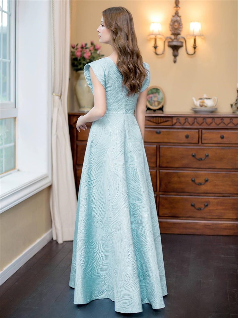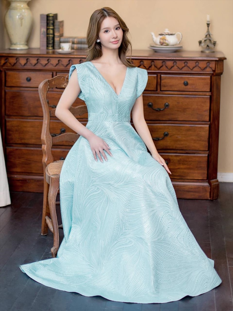 XS-Lサイズあり【SETTAN/セッタン】ワンカラー/ Vネック/ ジャガード/ Aライン/ ロング/ キャバドレス long[OF2] [LKS22106-BL-2511]