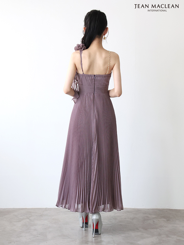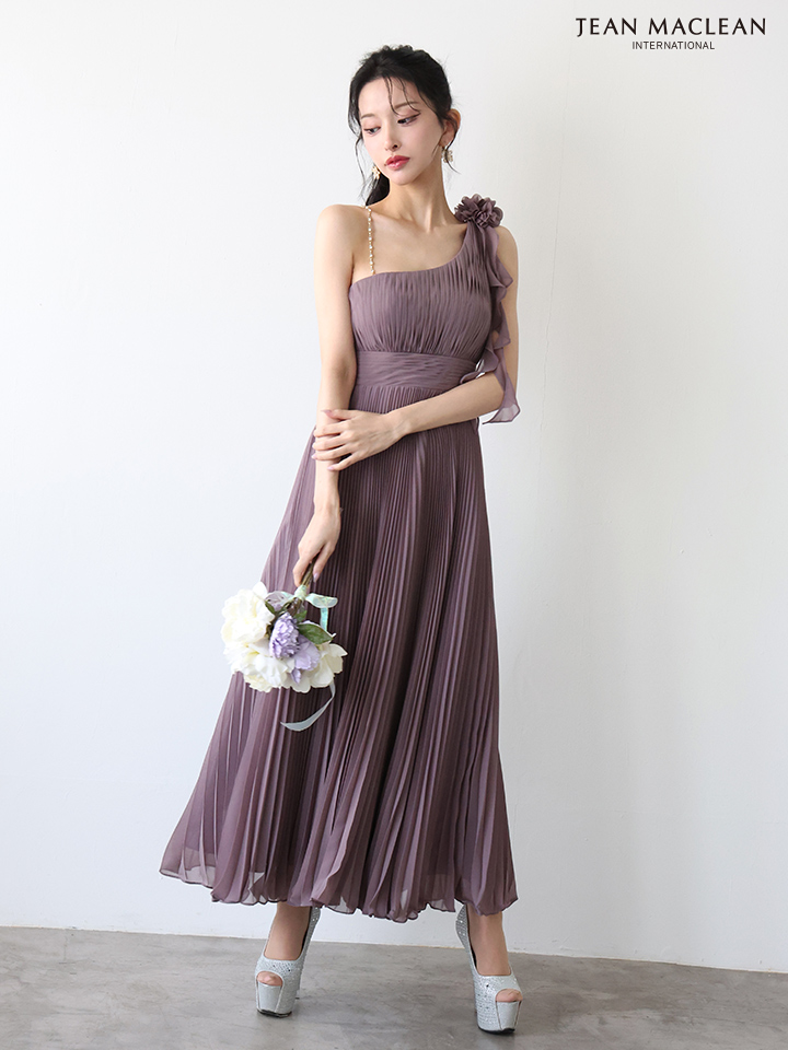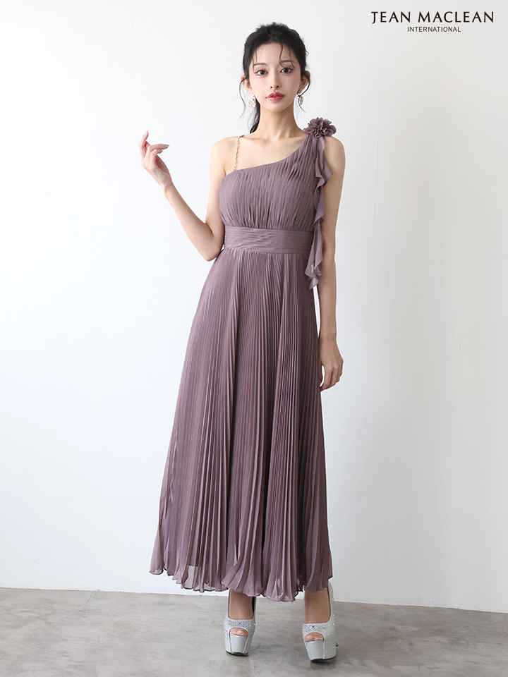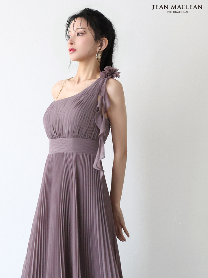 【JEAN MACLEAN/ジャンマクレーン】ワンショル/ シフォン/ プリーツ/ メロウ/ ショルダーチェーン/ フレア/ ロングドレス/ キャバドレスlong[OF2A] [51969-JM-earthMOV-2511]