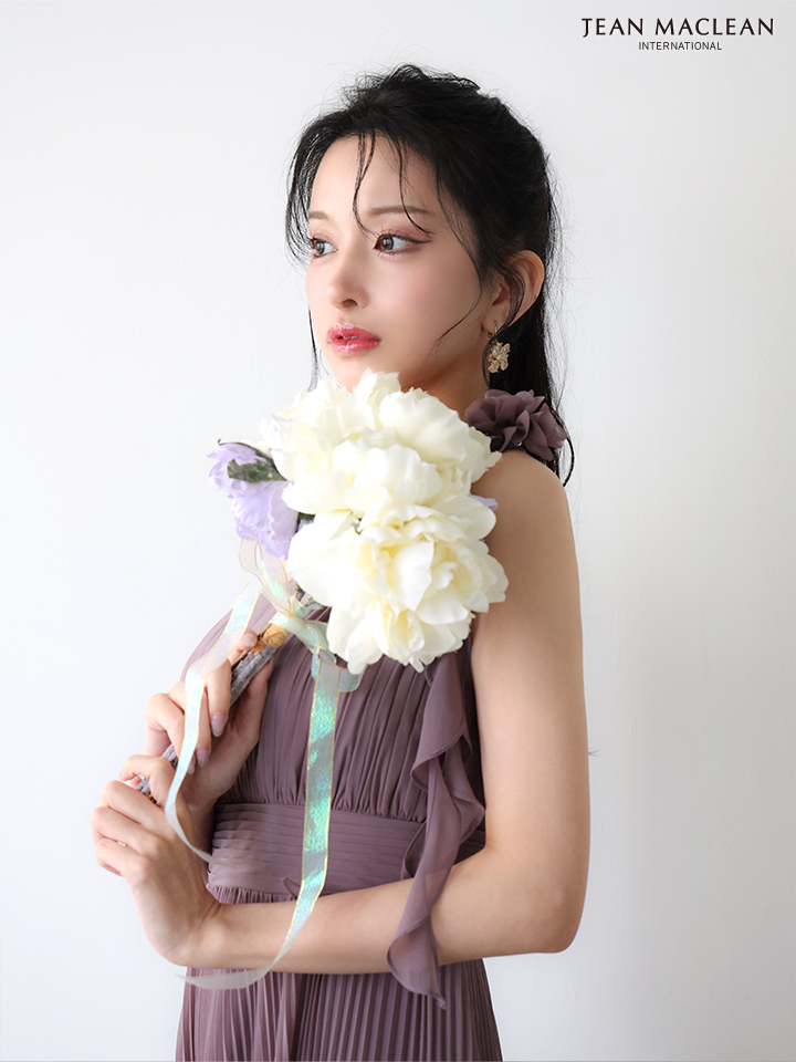 肩から揺れるペタルフリルが可憐なフレアロングドレス♡