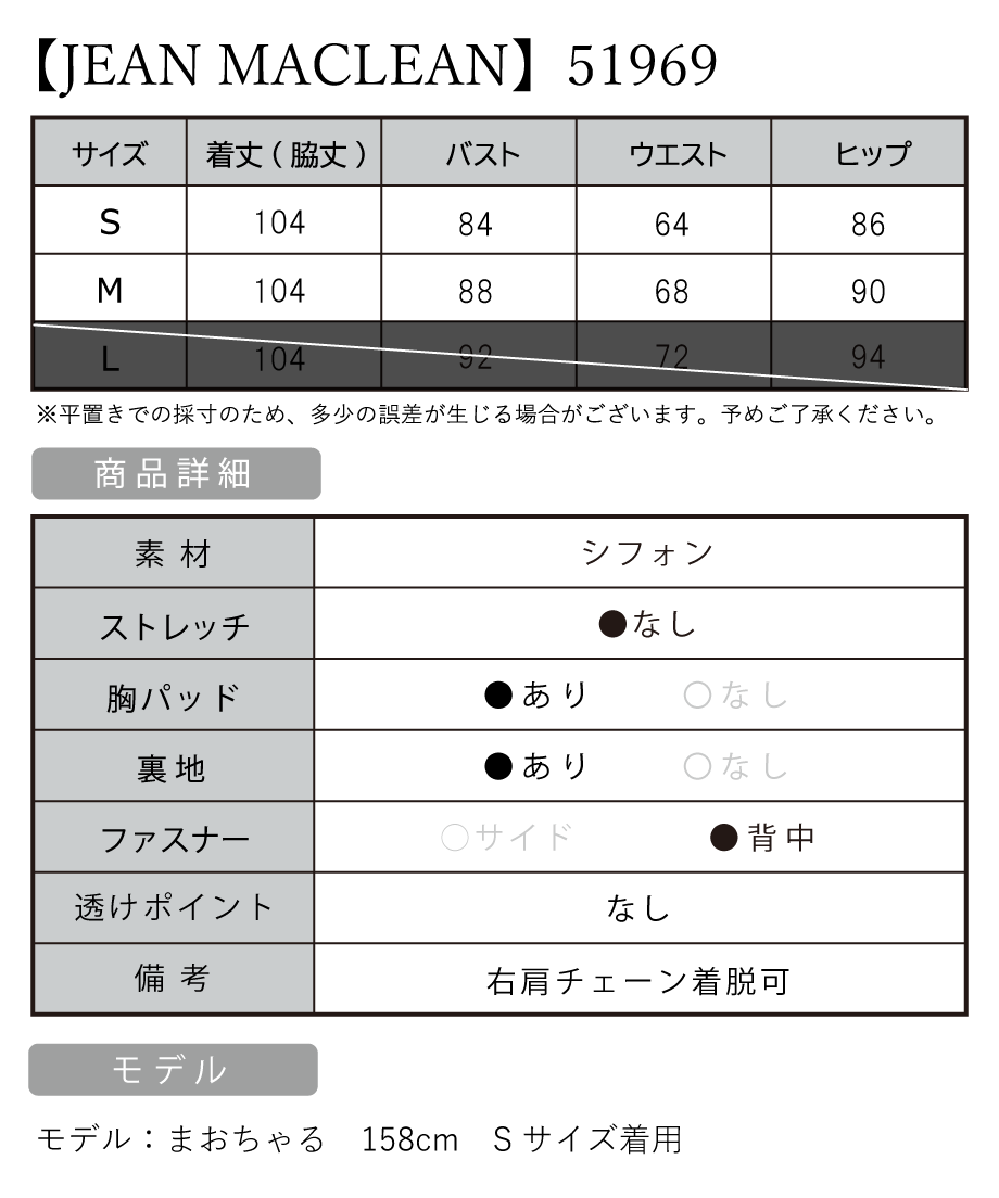 ※商品によって、ホック部分が金具に引っかけるタイプとドレス本体に引っかけるタイプがございます。【JEAN MACLEAN/ジャンマクレーン】