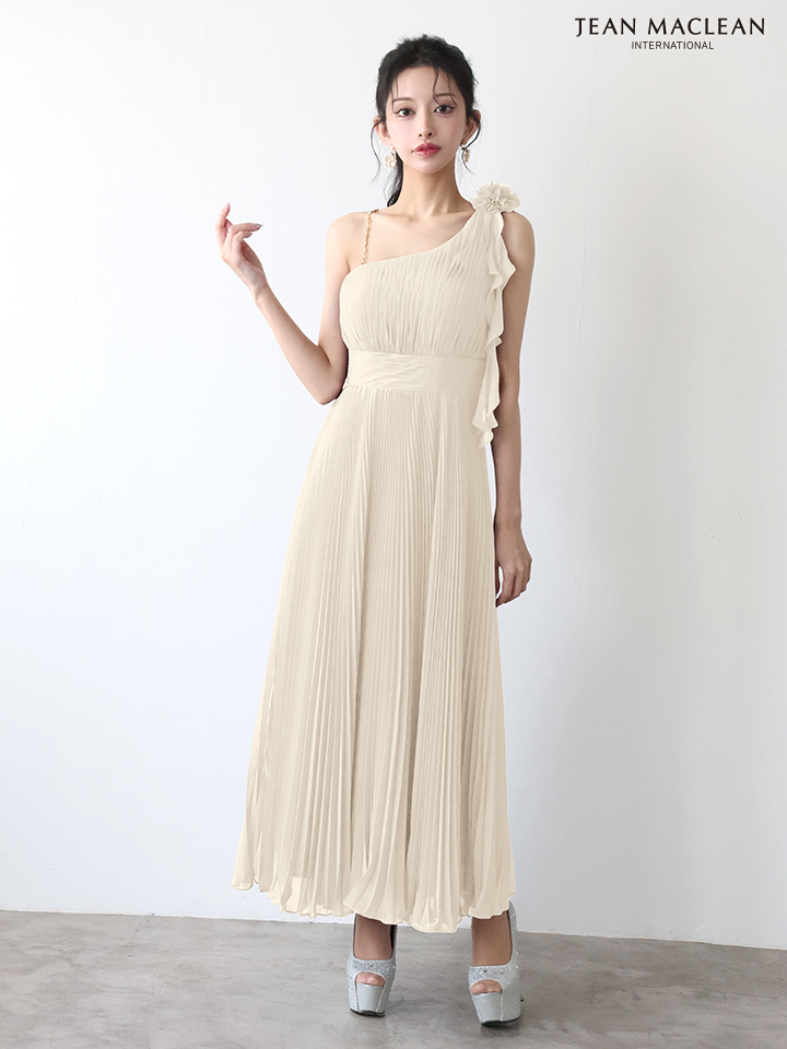 【JEAN MACLEAN/ジャンマクレーン】ワンショル/ シフォン/ プリーツ/ メロウ/ ショルダーチェーン/ フレア/ ロングドレス/ キャバドレスlong[OF2A]