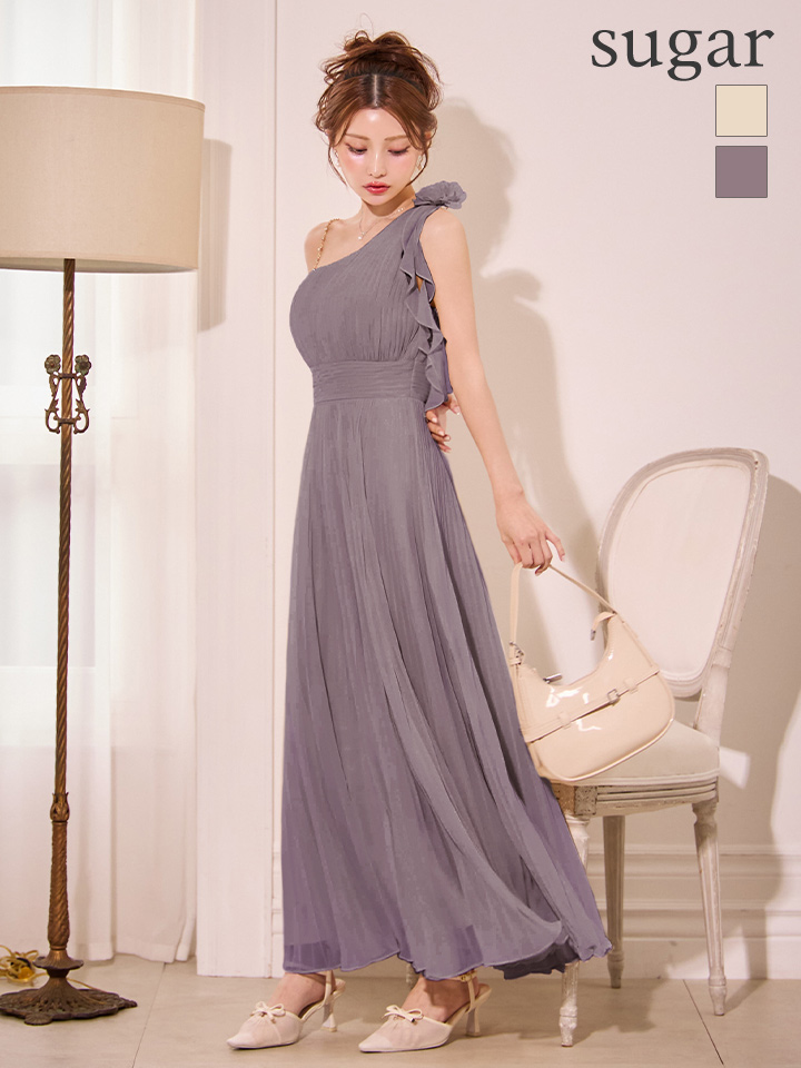 肩から揺れるペタルフリルが可憐なフレアロングドレス♡