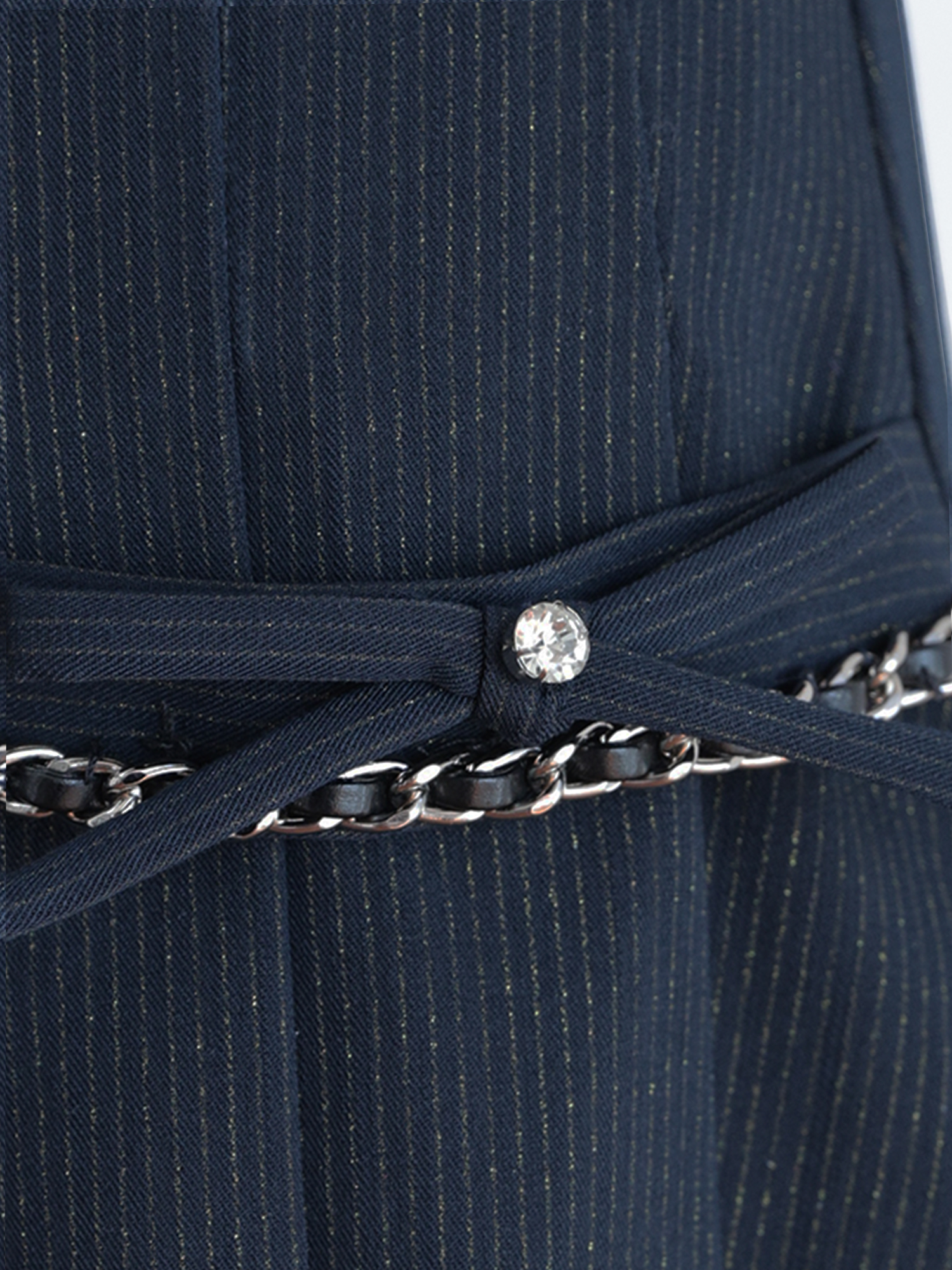 襟元とポケットのチェーン&リボンが上品なアクセント。
