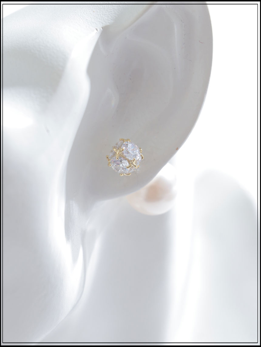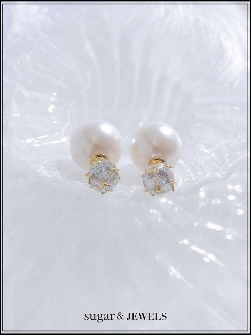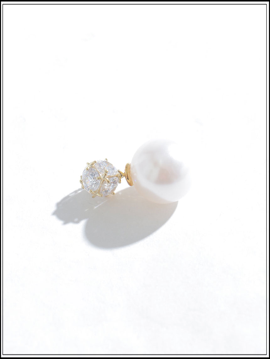 大粒のパールとビジューが輝くピアス。