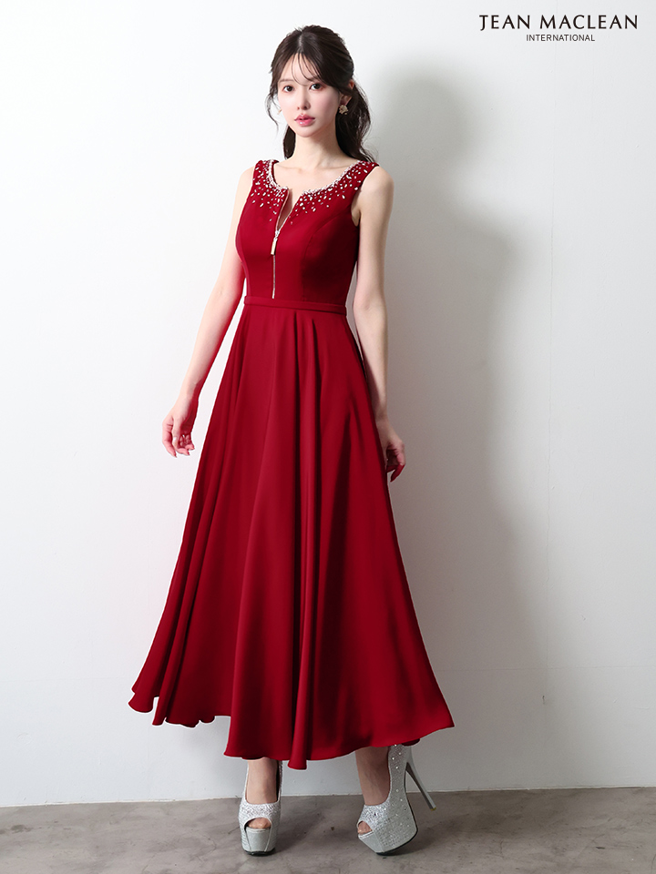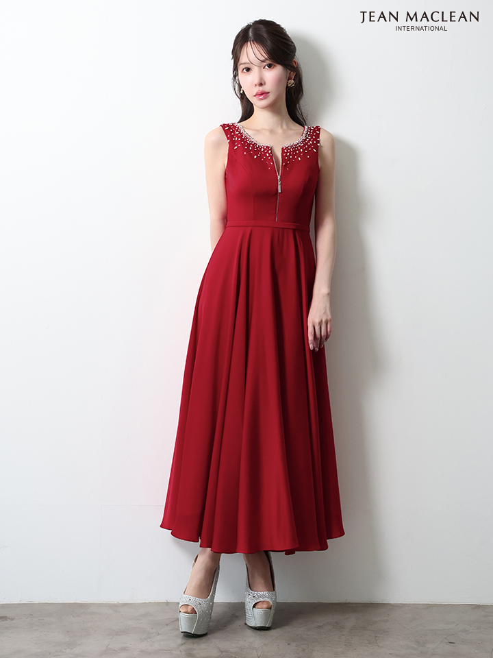 【予約商品/11月下旬発送予定】【JEAN MACLEAN/ジャンマクレーン】サテン/ ネックビジュー/ バストジップ/ ノースリーブ/ フレア/ ロングドレス/ キャバドレスlong[OF2A] [51968-JM-BGD-S251107]