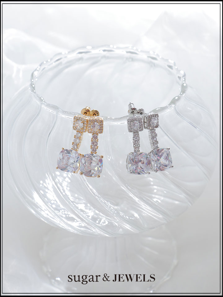 【ピアス】スクエアストーンチェーンピアス【Fサイズ/2カラー】[OF02]【YN】 [PI148-251105-1]