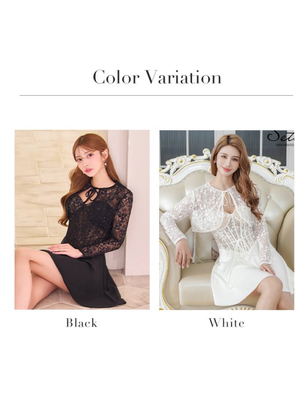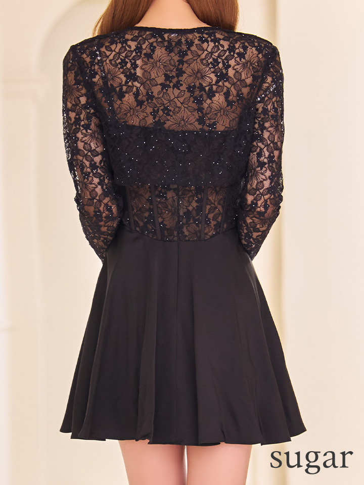XS-Lサイズあり【SETTAN/セッタン】2way/ コルセット風/ ボレロ/ キャミソール/ レース/ スパンコール/ Aライン/ フレア/ ミニドレス / キャバドレス[OF2]