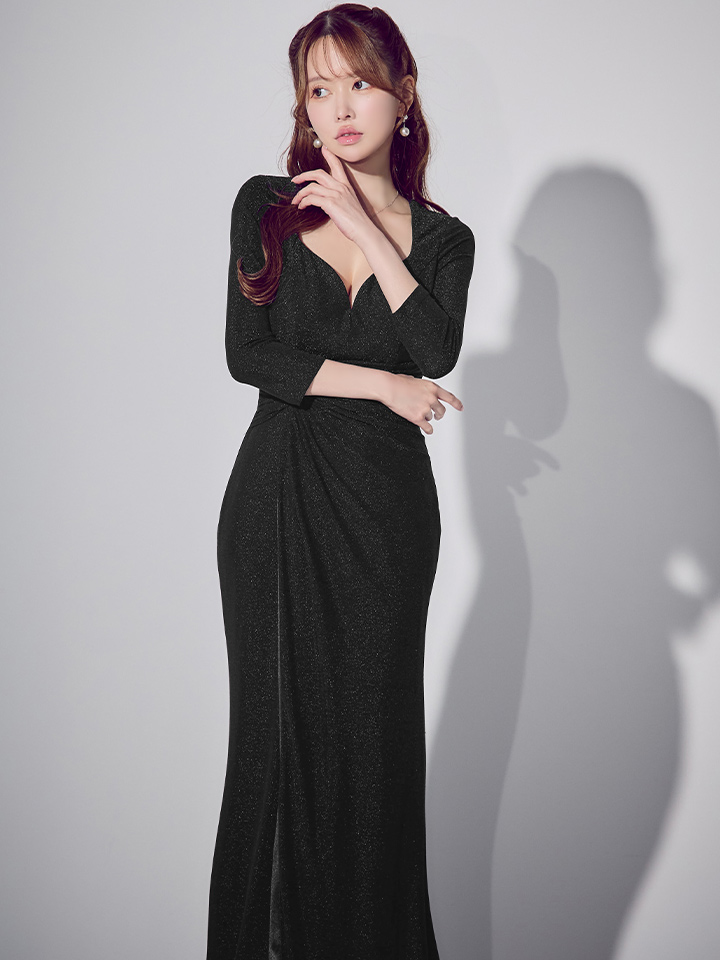 上品に煌めくラメニットが高級感溢れるロングドレス♡