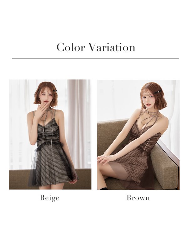 【予約商品/2月中旬-2月下旬発送予定】XSサイズあり【ANGEL R/エンジェルアール】クロスネック/ チェック/ レース/ フレア/ マイクロミニドレス/ キャバドレス[OF2] [AR25866-BR-S251110]