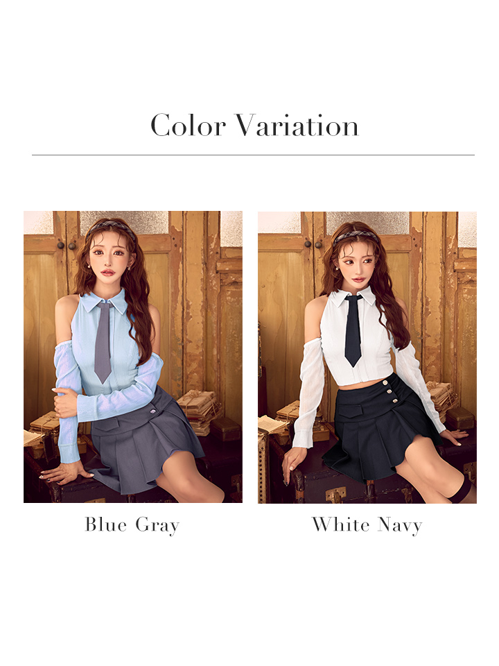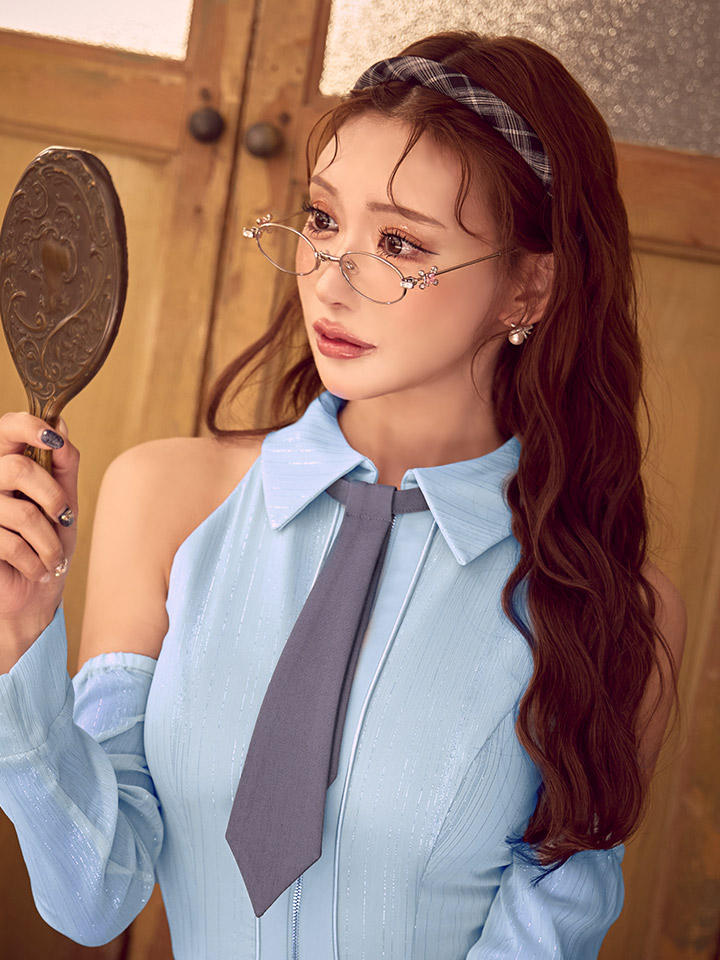 XSサイズあり【an /アン】4way/ 袖取り外し可能/ ネクタイ付き/ 襟/ フロントジップ/ アメスリ/ プリーツ/ フレア/ セットアップ/ ミニドレス/ キャバドレス[OF05] [AOC3943-WxNV-S251111]