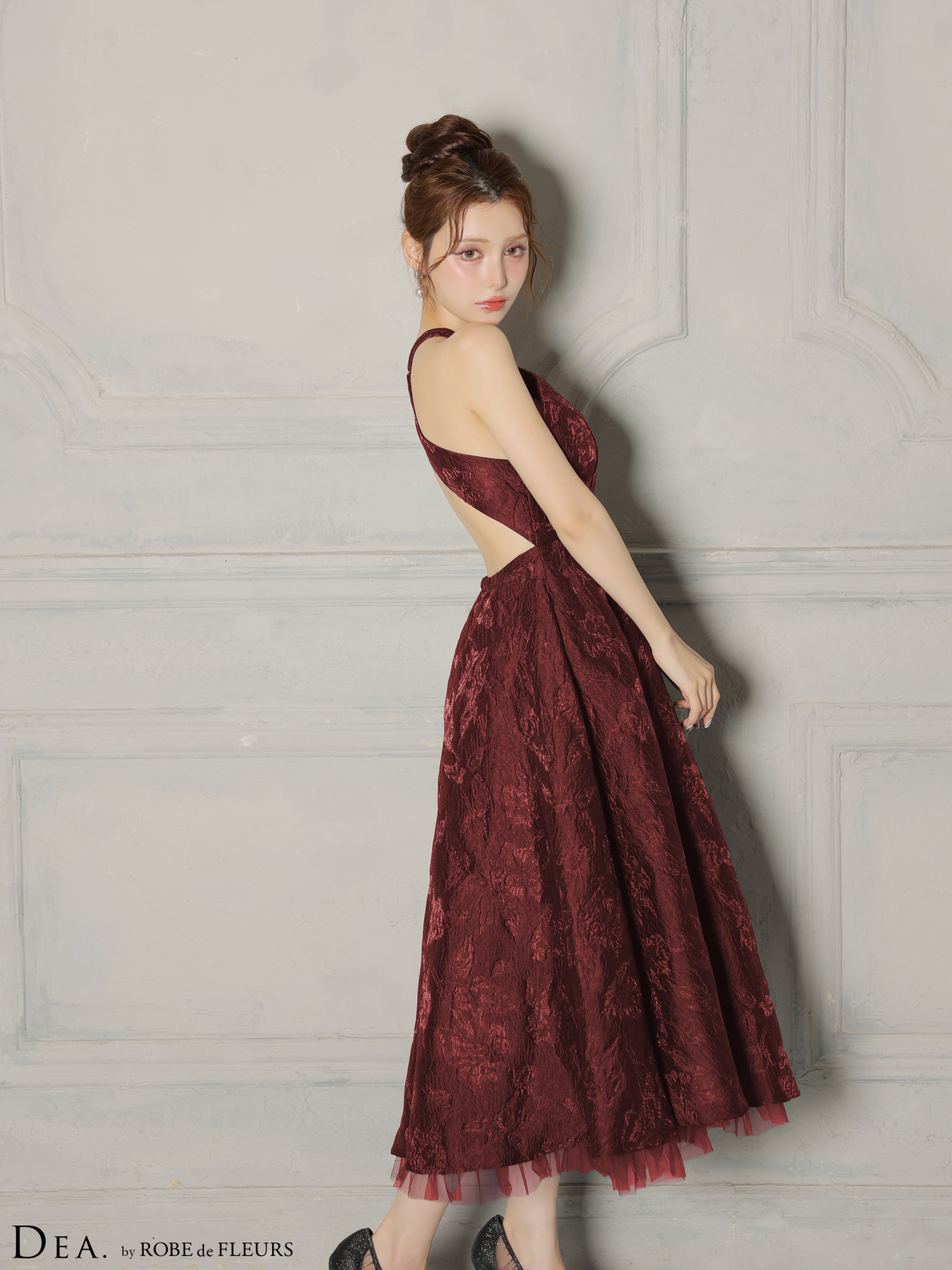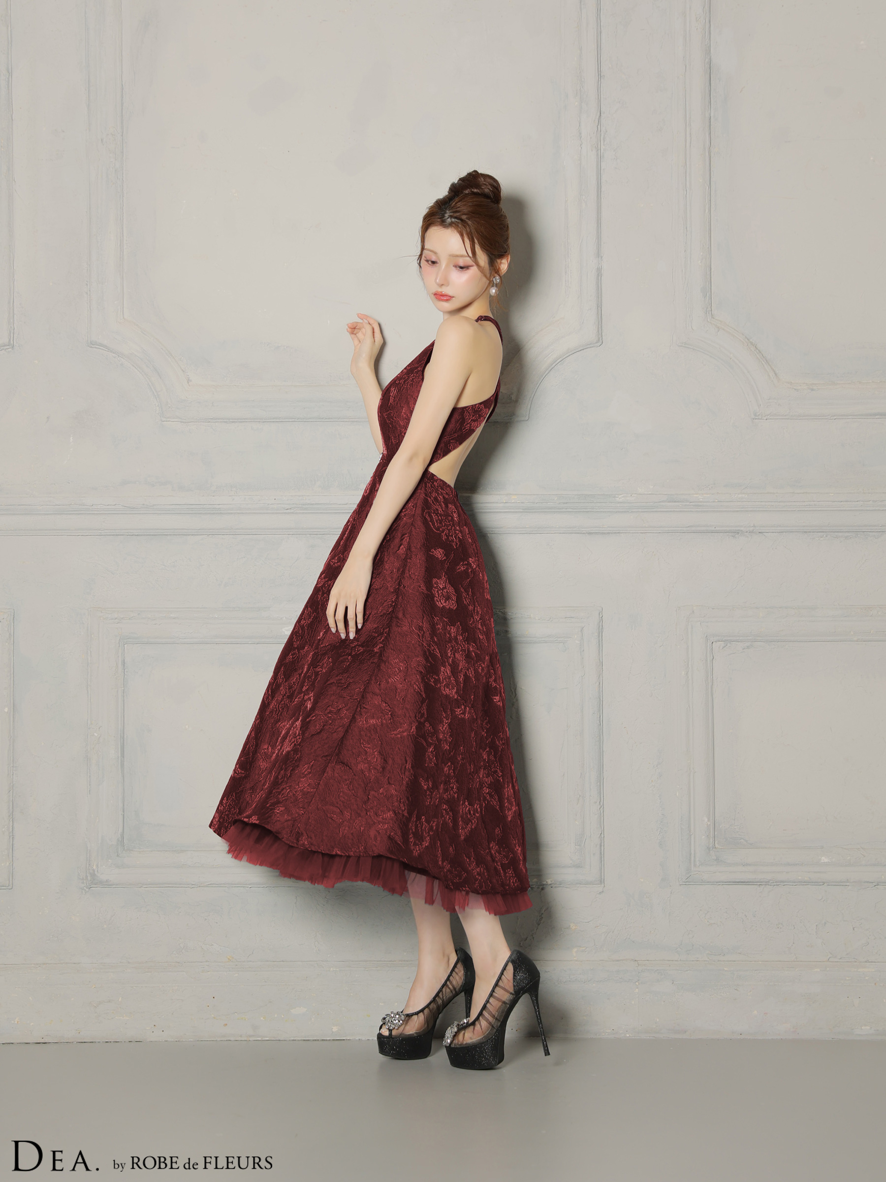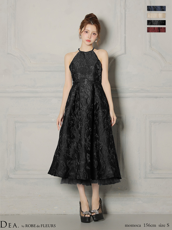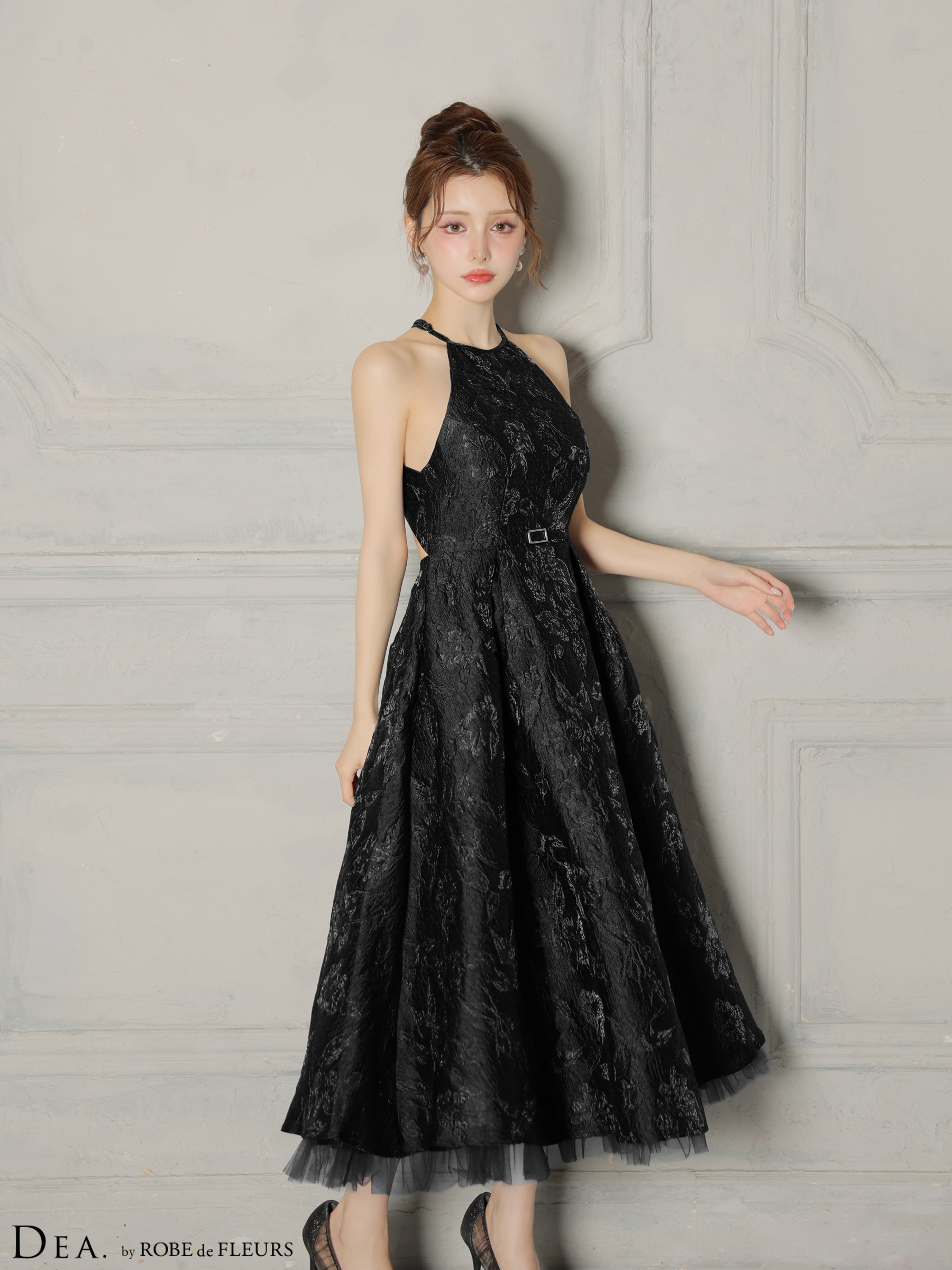 XS-Lサイズあり【DEA./ディア】ラメ/ ジャガード/ アメスリ/ フレア/ ミディアムドレス/ キャバドレス long[OF08]