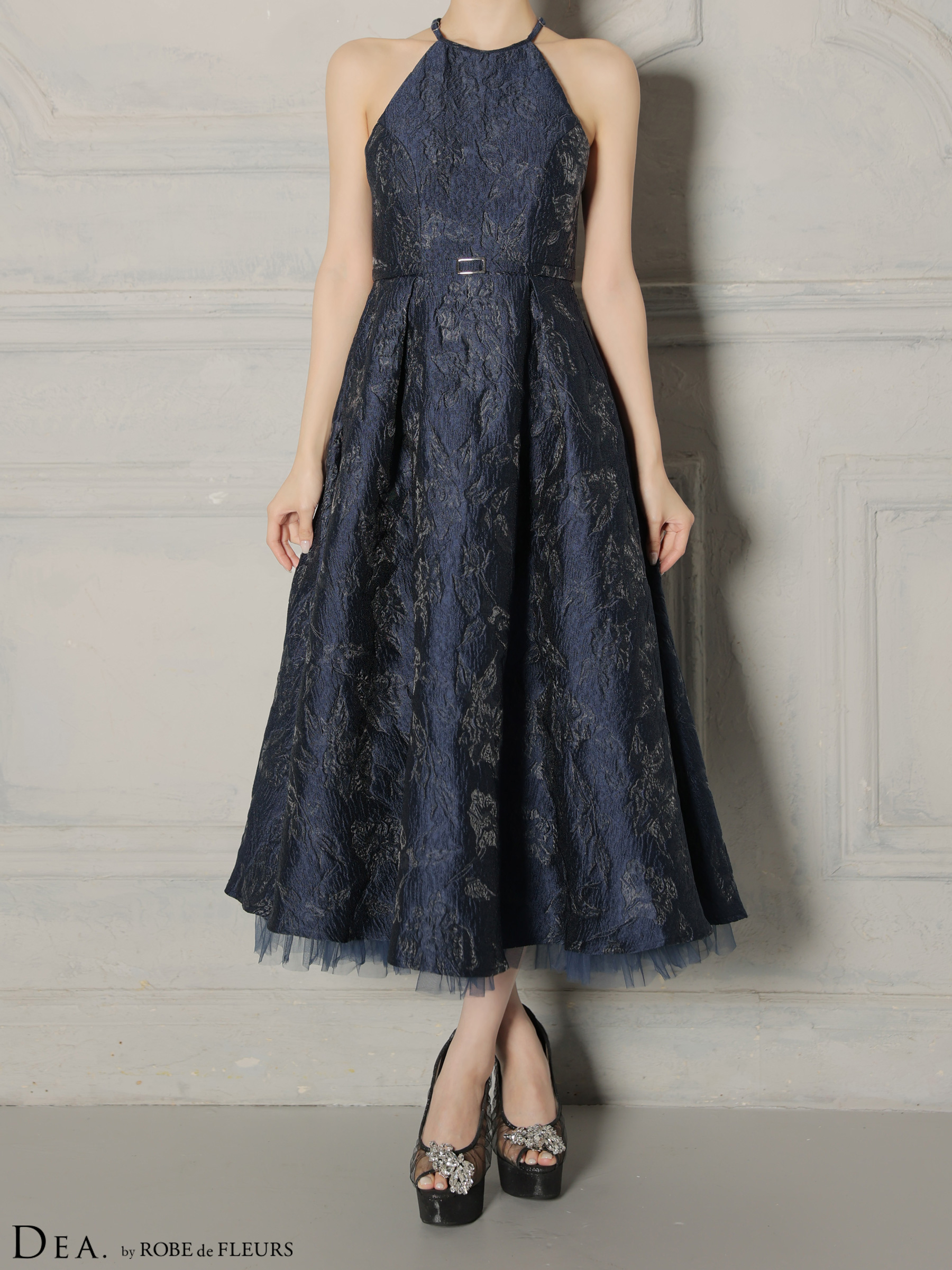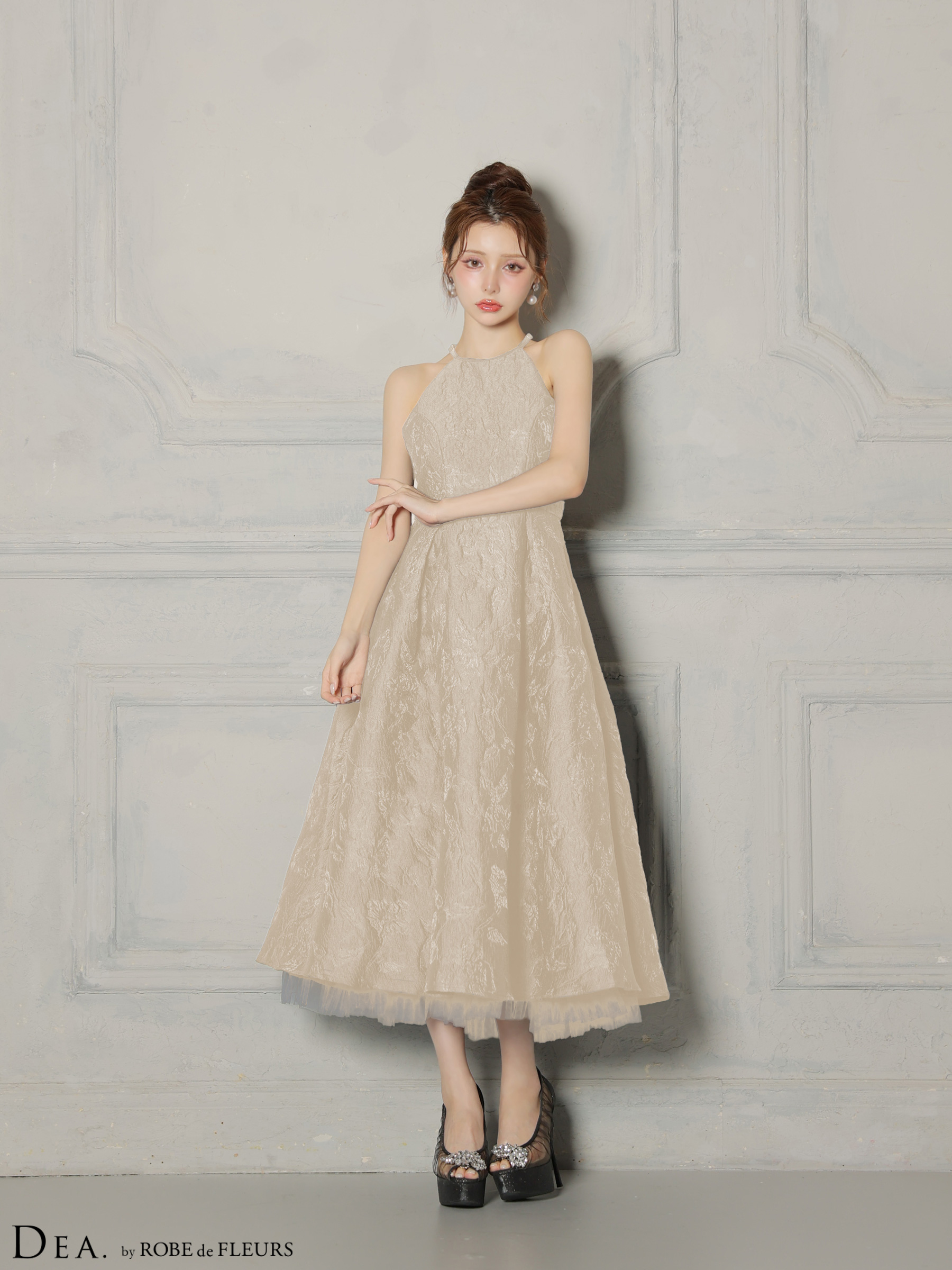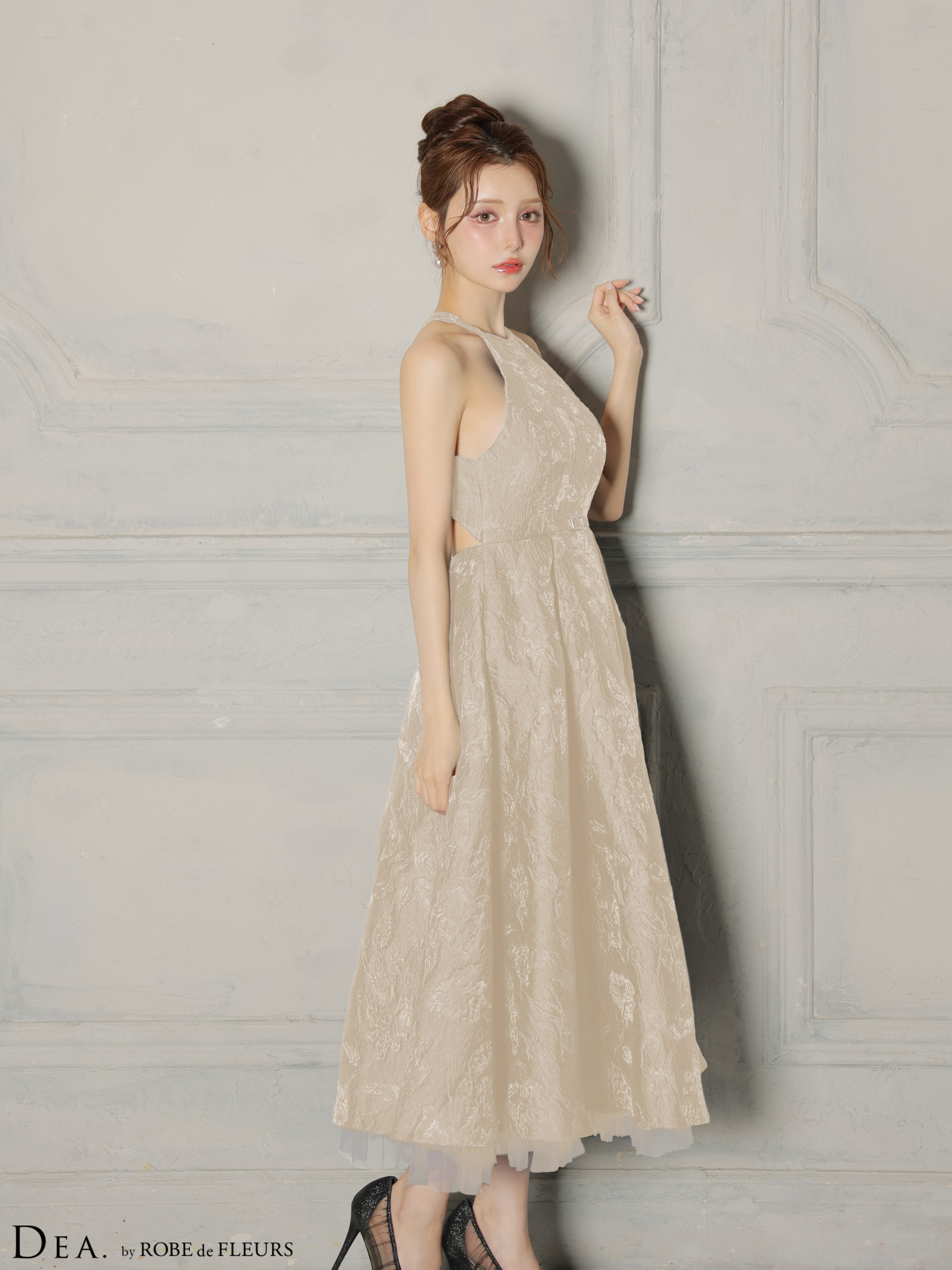 XS-Lサイズあり【DEA./ディア】ラメ/ ジャガード/ アメスリ/ フレア/ ミディアムドレス/ キャバドレス long[OF08] [DE4332-BE-2511]