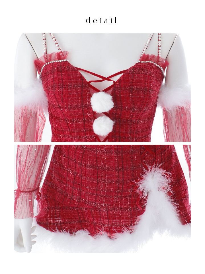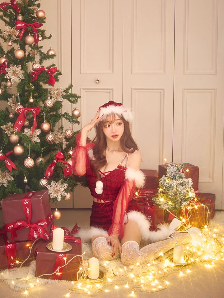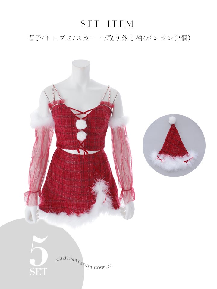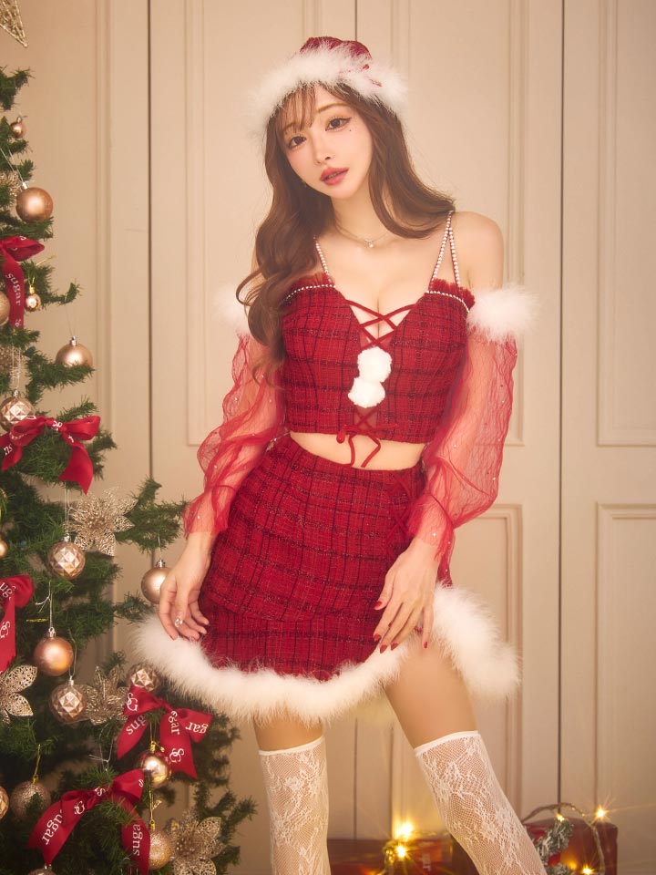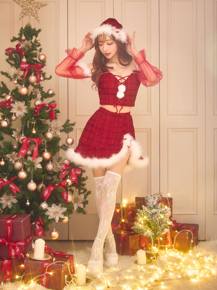 【即日発送】【サンタ】真優川咲ちゃんコラボバストクロスチェックツイードサンタコスプレ【コスプレ5点セット】【XS-Mサイズ/1カラー】[OF03] [SS-185-YN-MS-R-25MS-1]