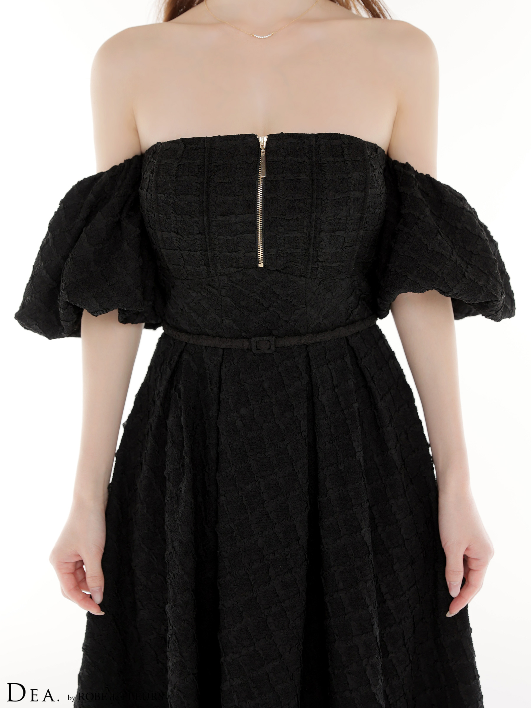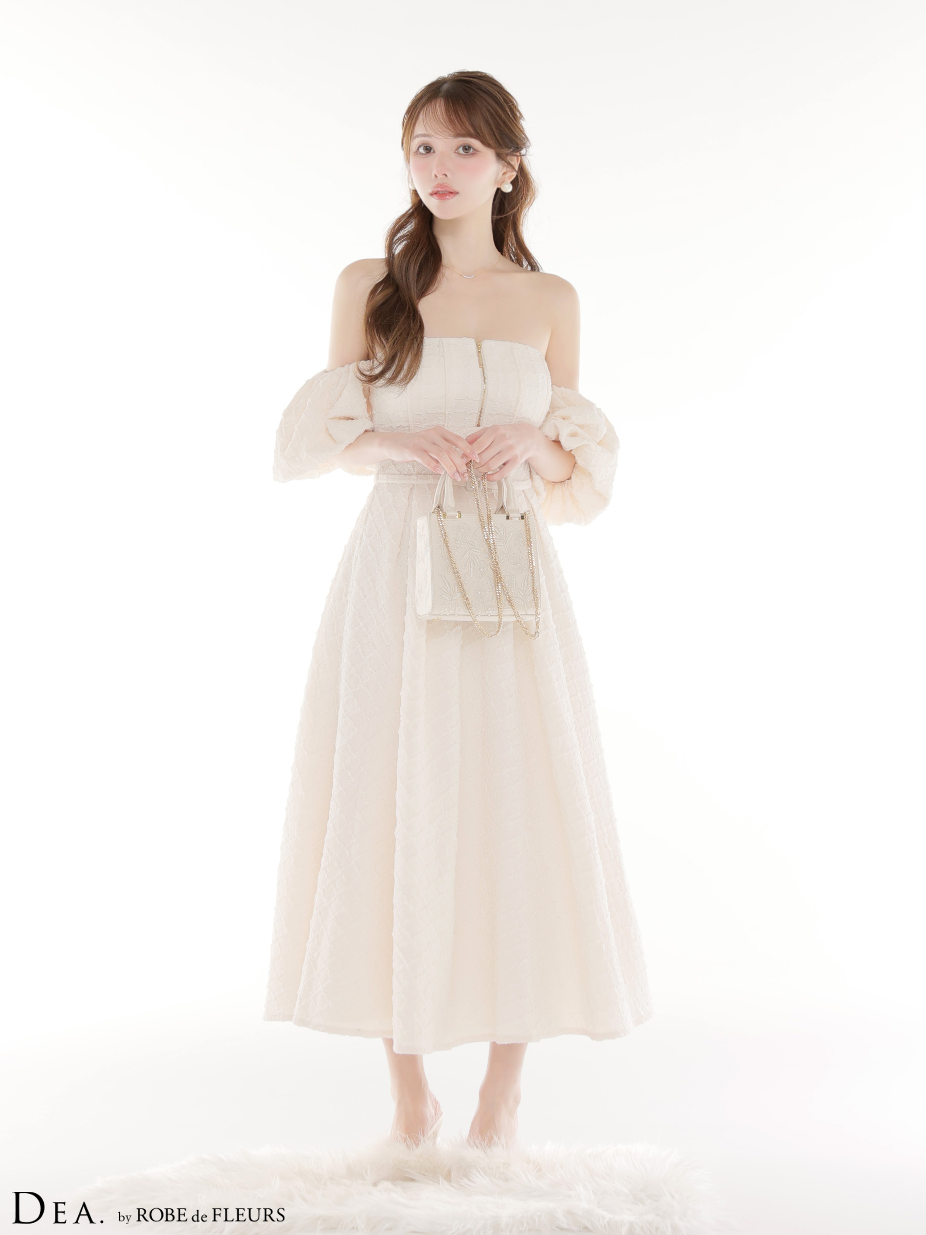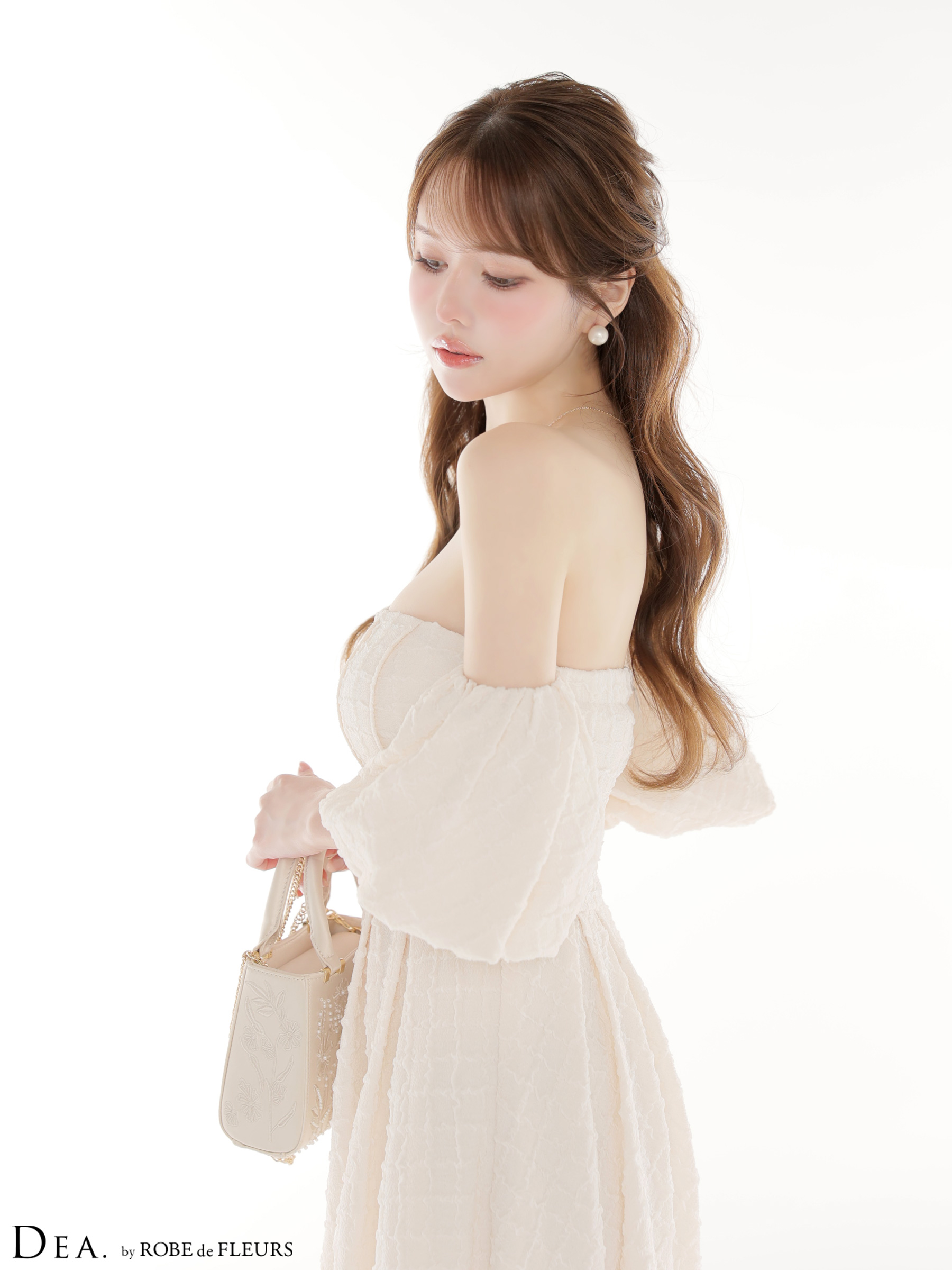 【DEA. by ROBE de FLEURS/ディアバイローブドフルール】トレンド感とモードな雰囲気を兼ね備えたオフショルダードレス。