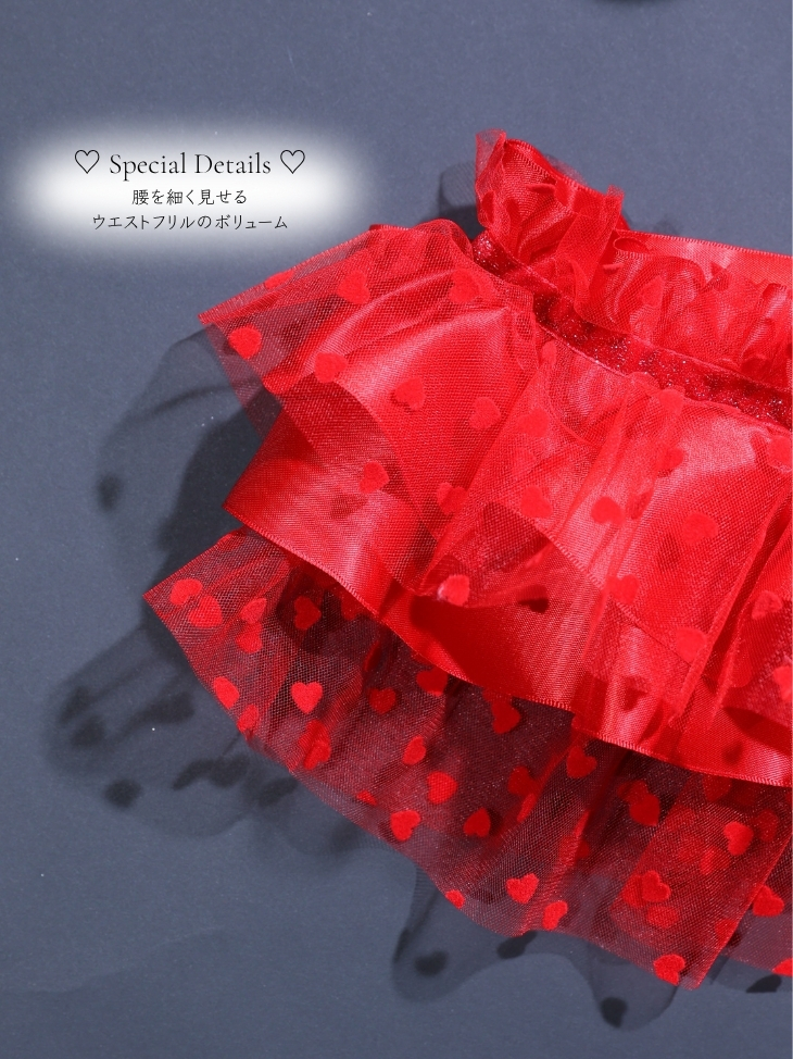 ウエストフリルのボリュームはウエストのくびれをとても綺麗に魅せます♡