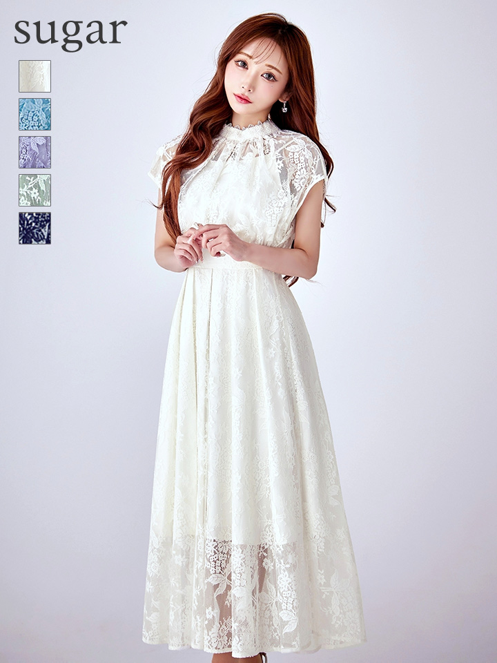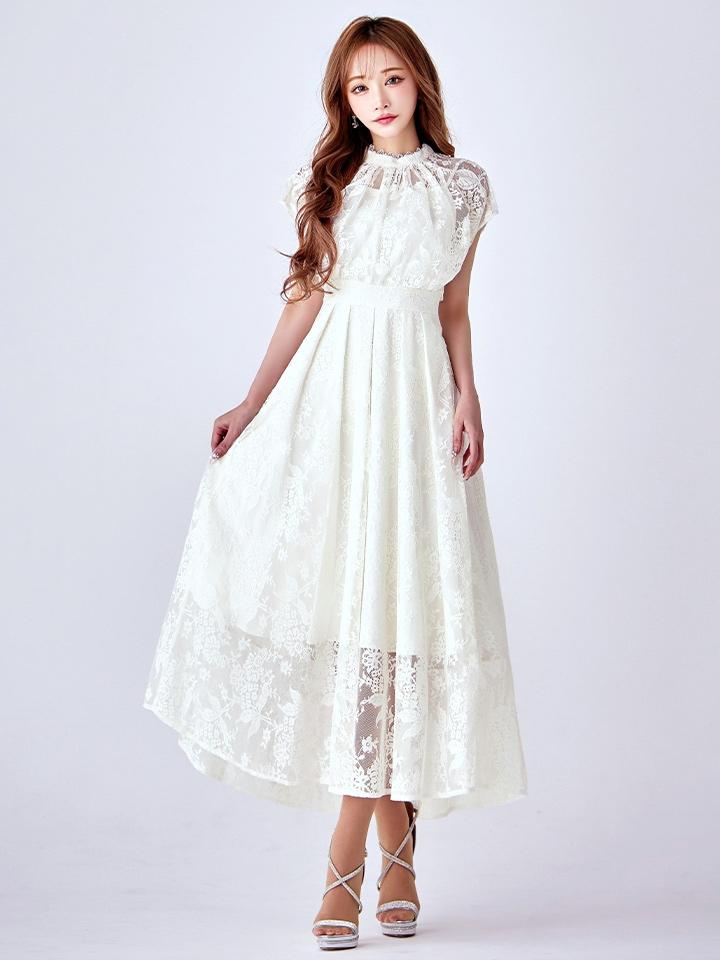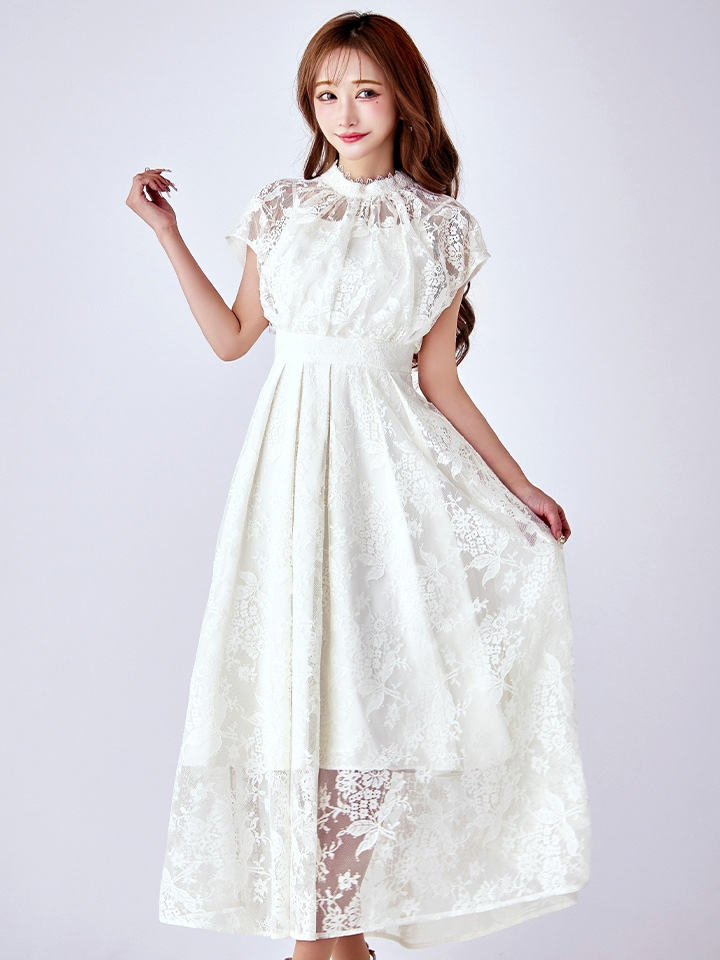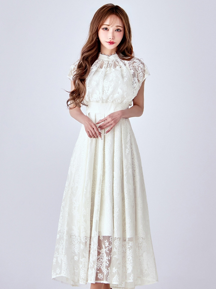 - > XLサイズあり【AMORA GRACE / アモーラグレース】 オケージョンドレス/ パーティードレス/ お呼ばれドレス/ 総レース/ ハイネック/ フラワーレース/ フレンチスリーブ/ フレア/ Aライン/ ミモレ丈/ ワンピース/ ミディアムドレス/ キャバドレス[OF05]