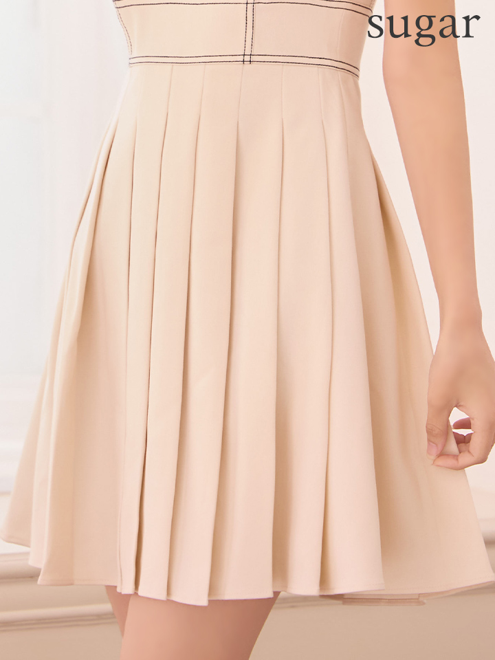 XS-Lサイズあり【ERUKEI エルケイ】シンプル/ Vネック/ ノースリーブ/ プリーツ/ Aライン/ フレア/ ワンピース/ ミニドレス/ キャバドレス[OF2] [LKE25116-IV-S251110]