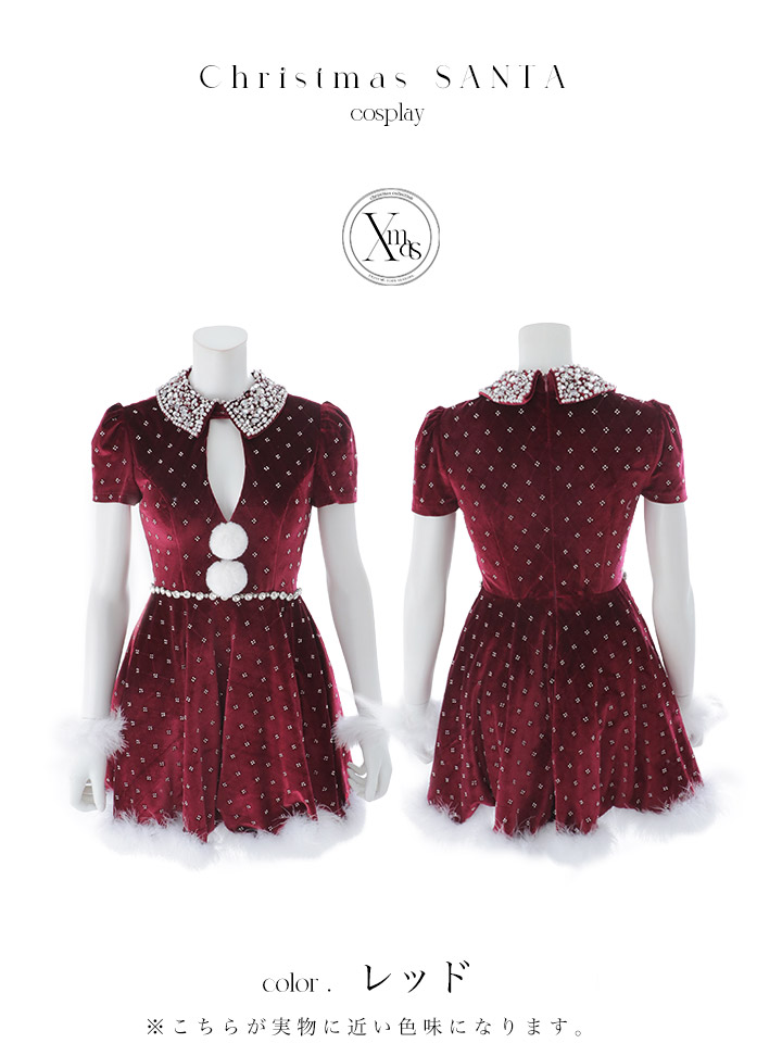 【即日発送】【サンタ】襟ビジューアーガイル風ベロアサンタコスプレ【コスプレ4点セット】【XS-Mサイズ/1カラー】[HC02]