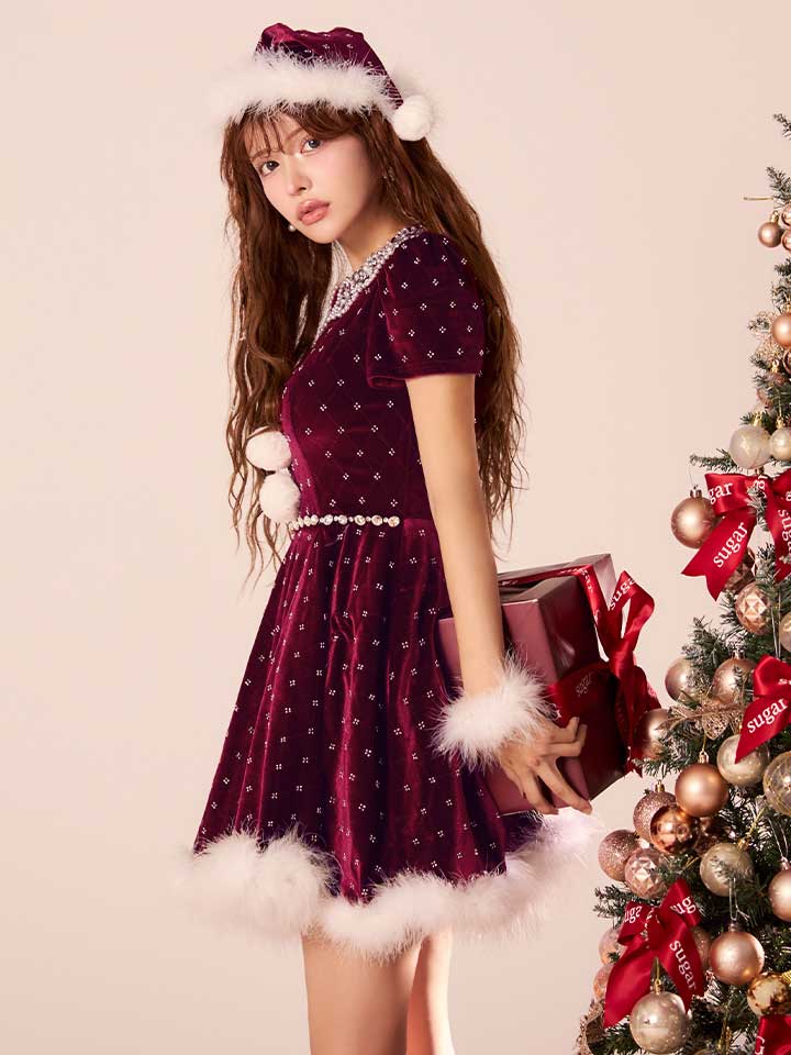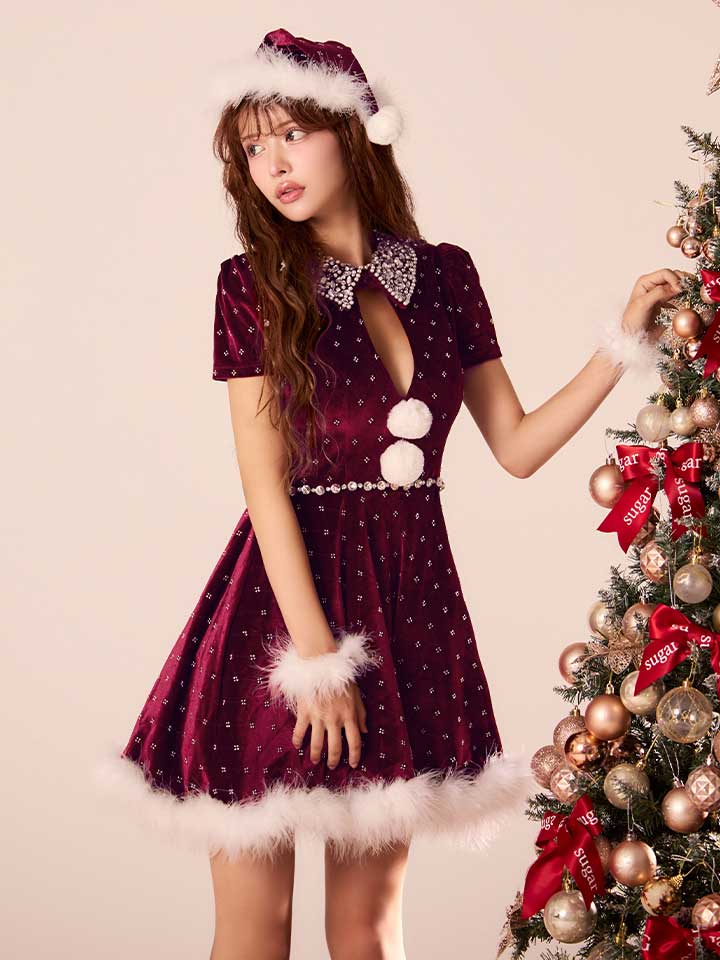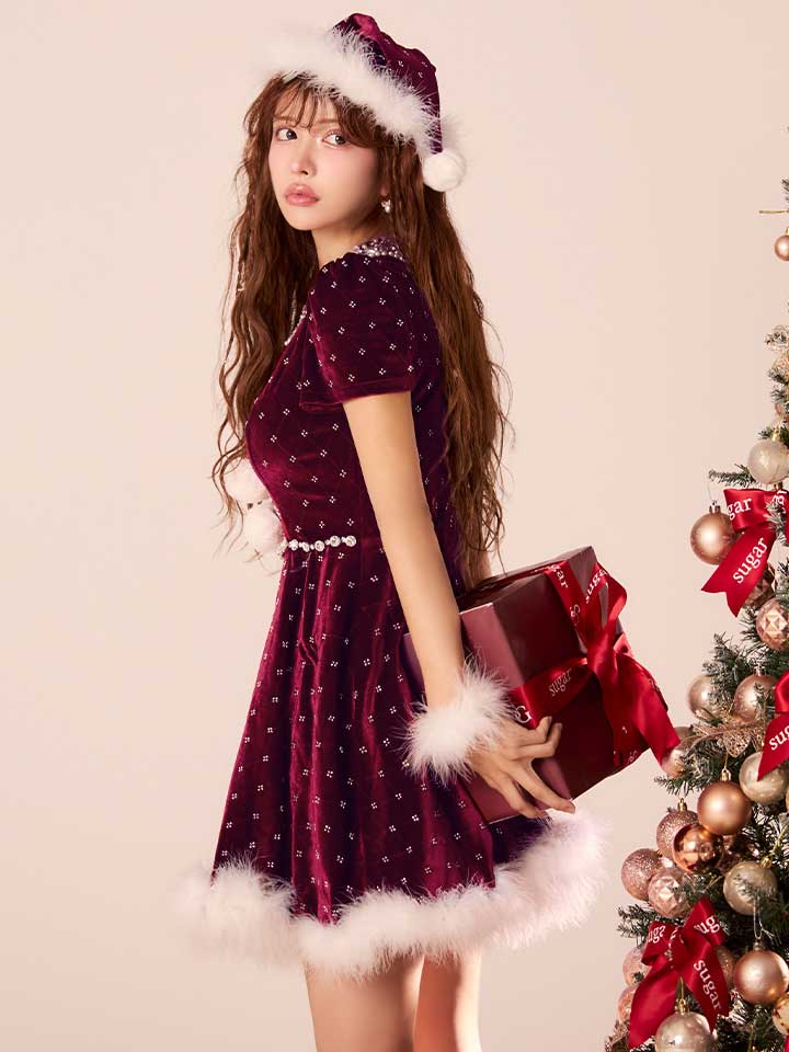 上品なベロア素材のサンタコスプレで、ワンランク上の高級感を演出。