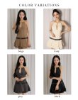 デコルテ・ベルト・スカートのプリーツ部分のフェイクレザー切替が個性的。